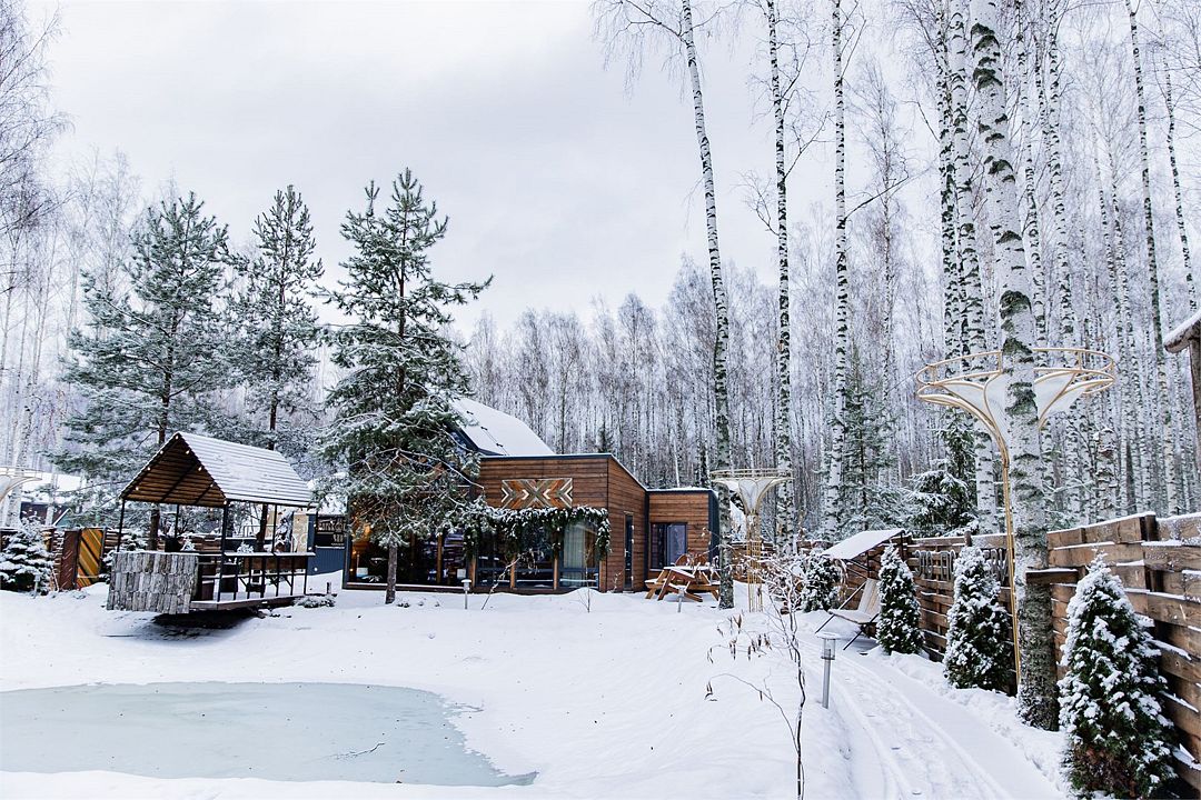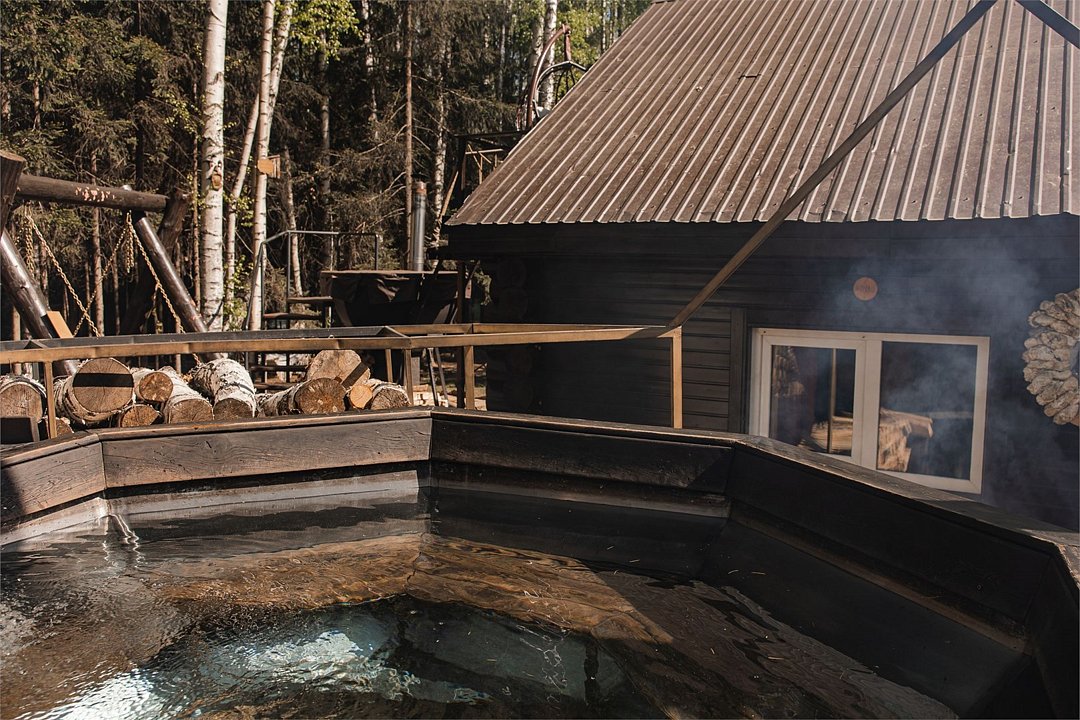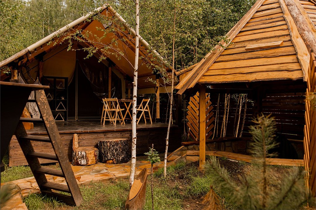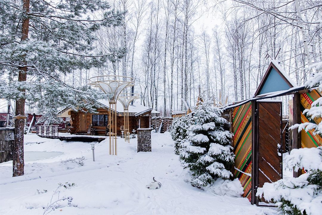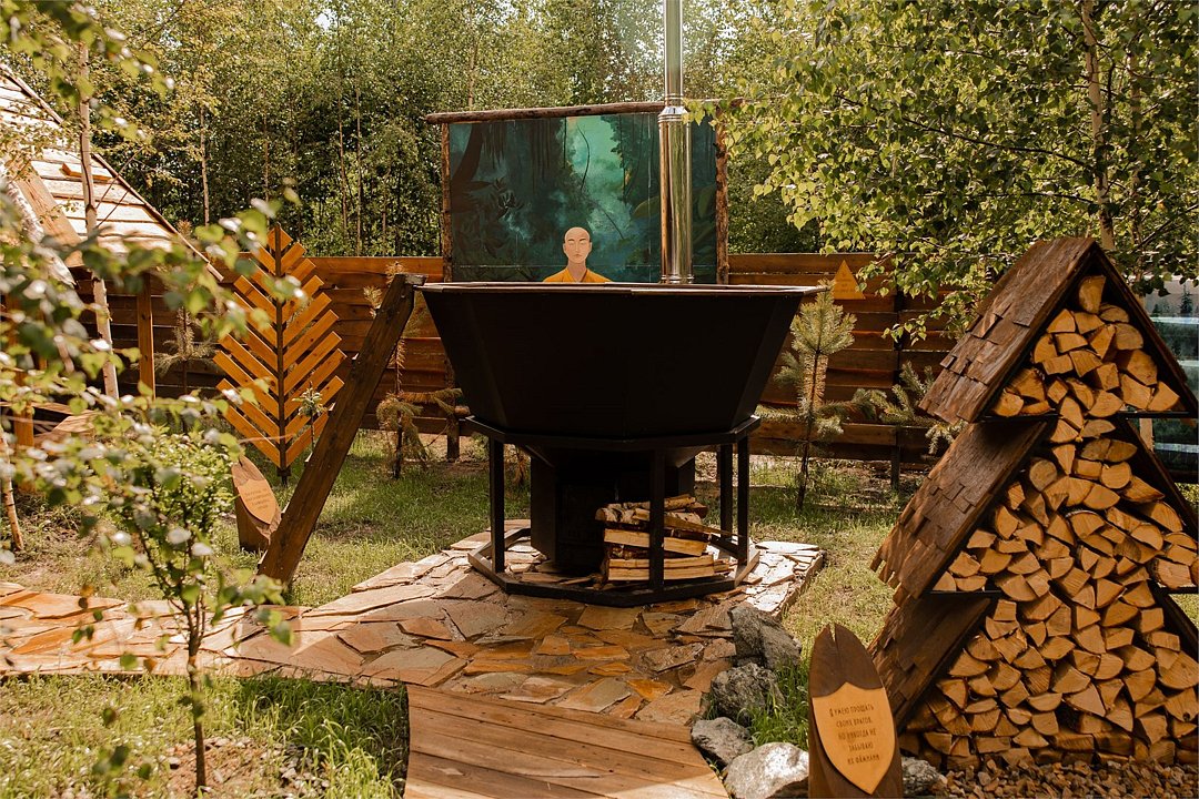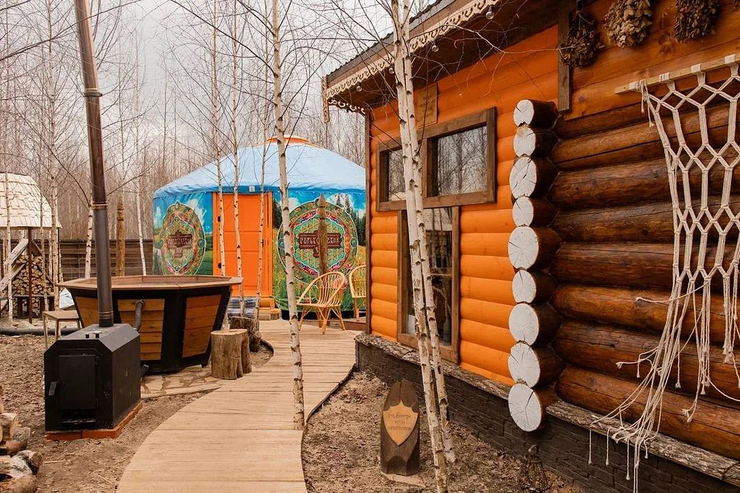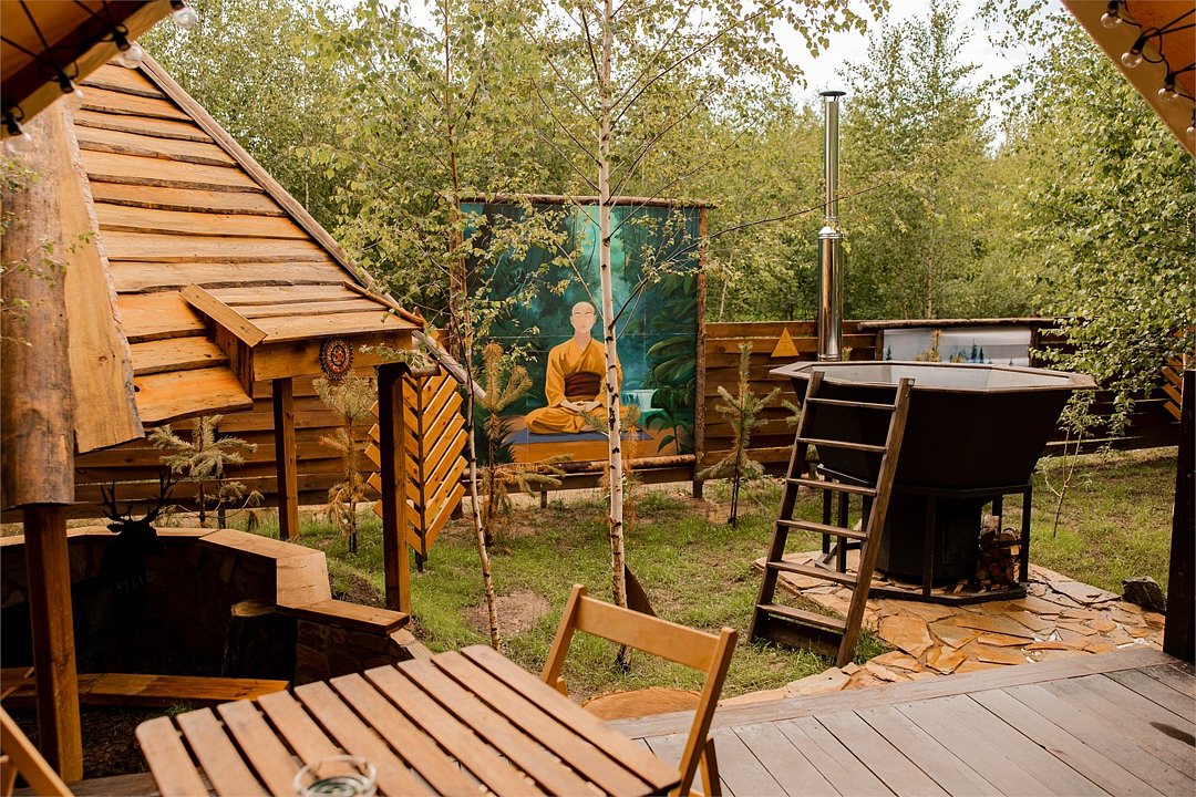 Глэмпинг включает в себя приватные пространства с домами вместимостью от 2 до 11 человек. Всего здесь 9 банных чанов, 5 оборудованных зон для посиделок у костра, юрта, 4 бани и пруд.