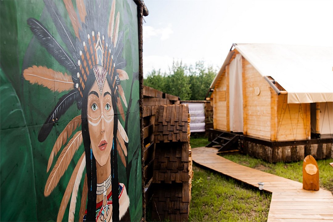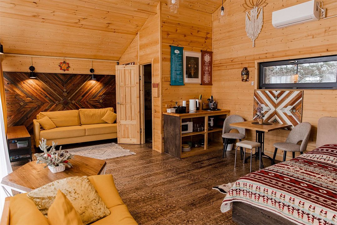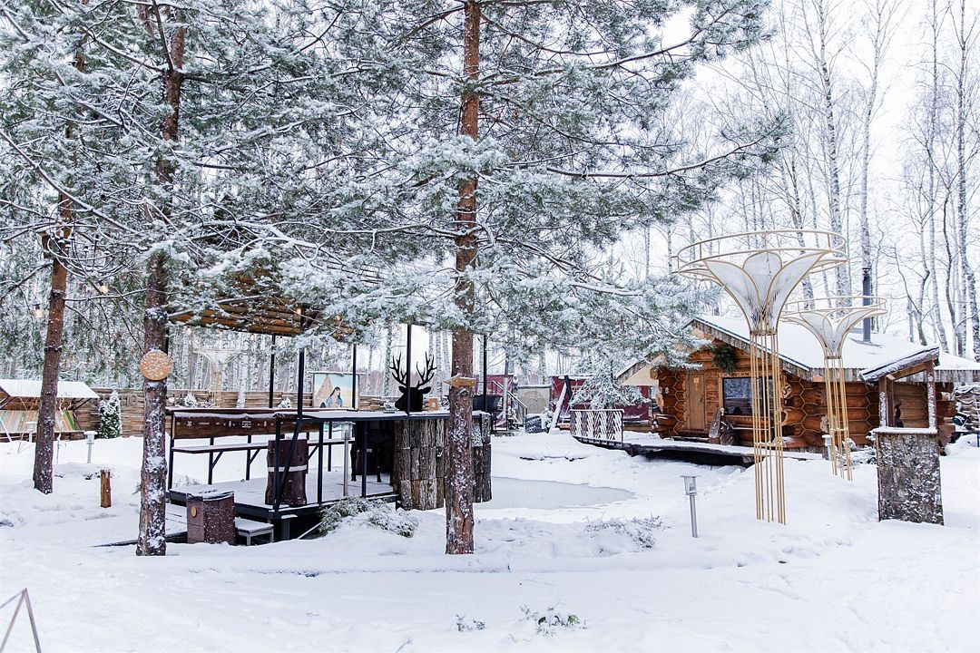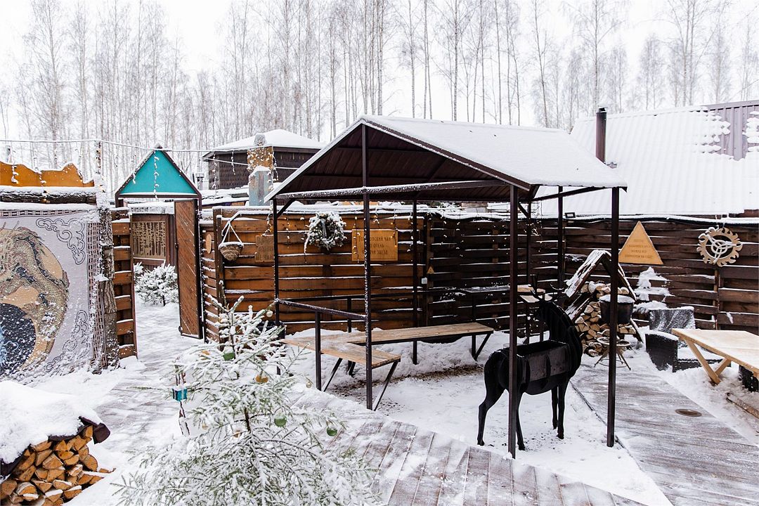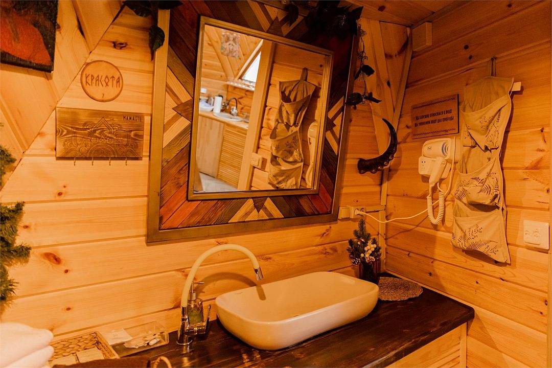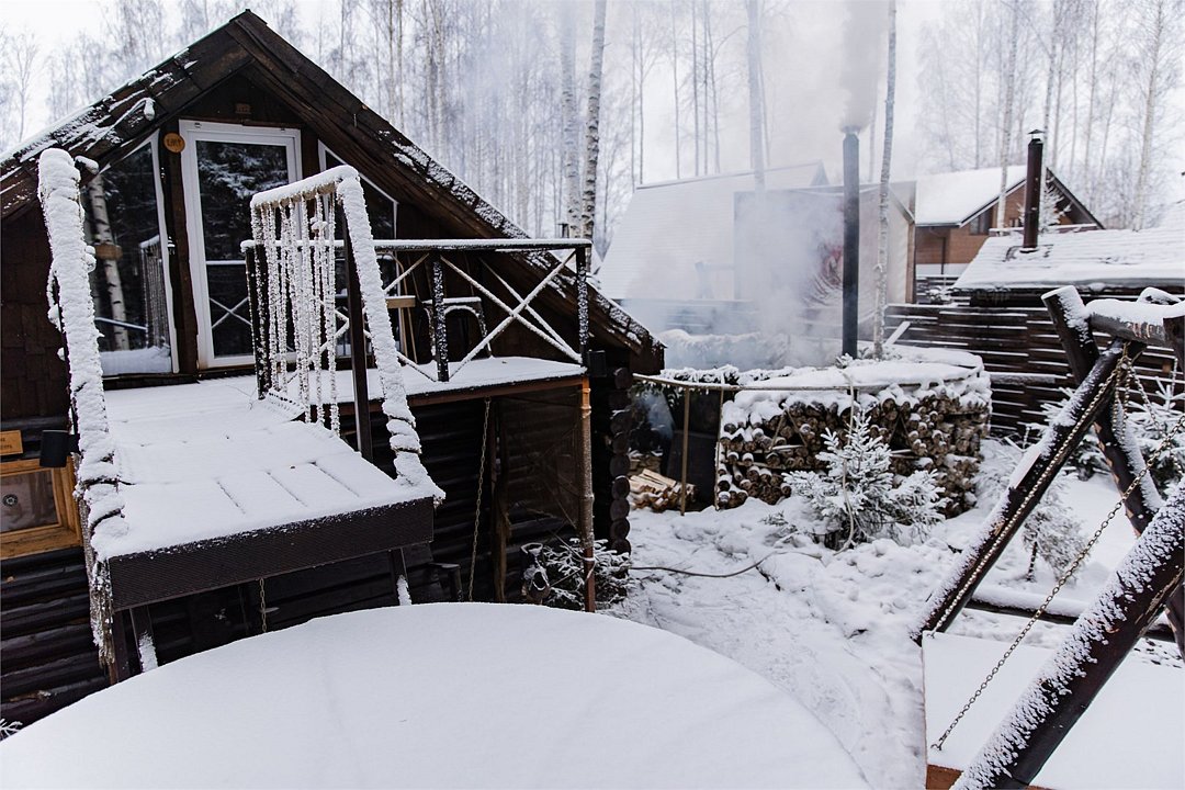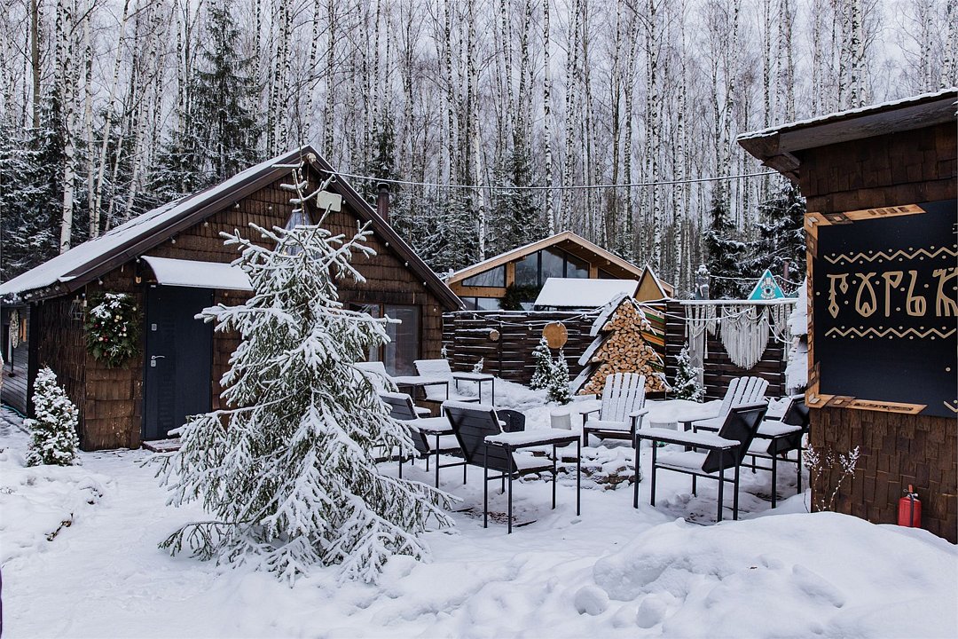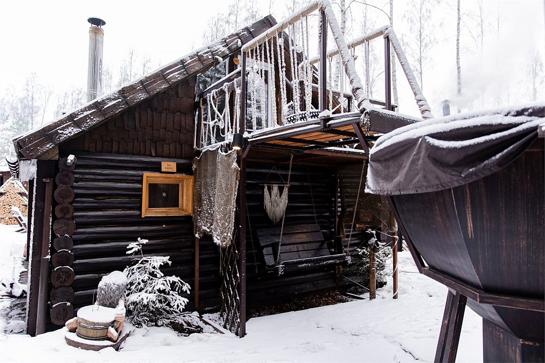 Глэмпинг включает в себя приватные пространства с домами вместимостью от 2 до 11 человек. Всего здесь 9 банных чанов, 5 оборудованных зон для посиделок у костра, юрта, 4 бани и пруд.