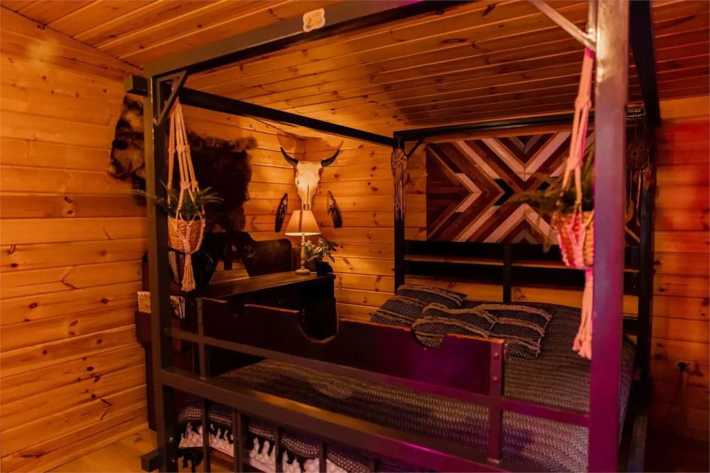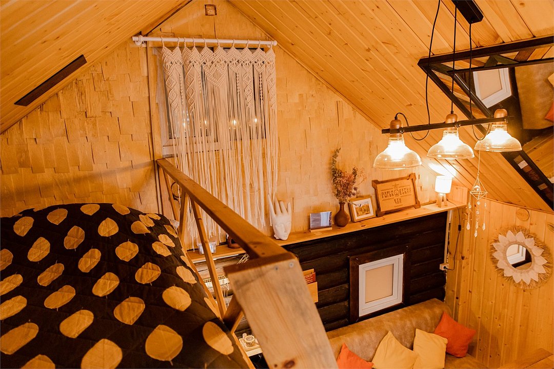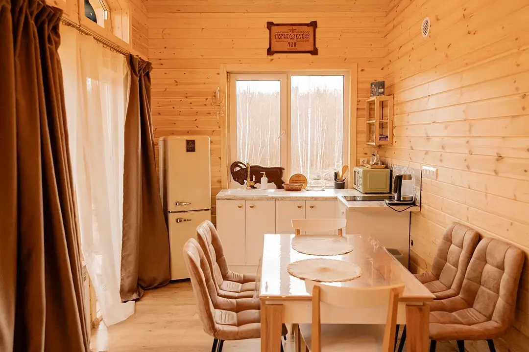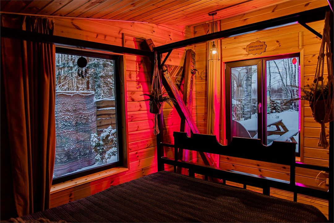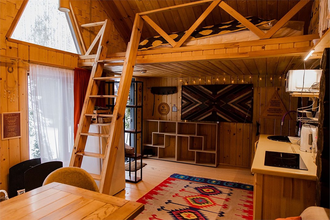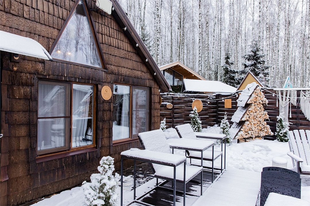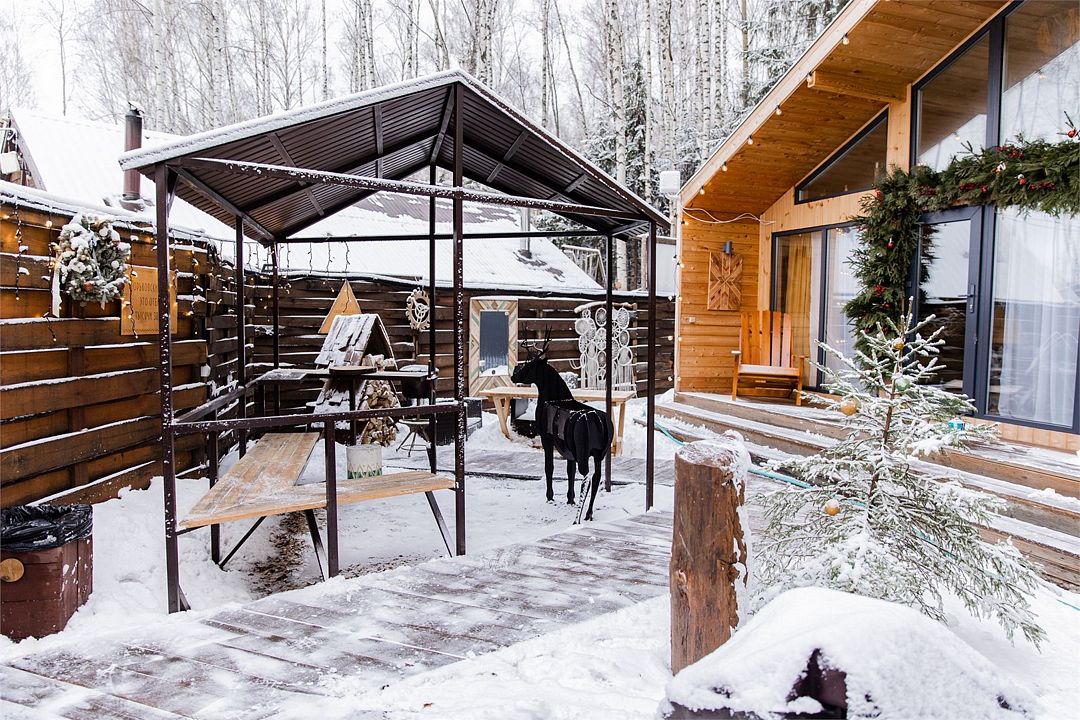 Глэмпинг включает в себя приватные пространства с домами вместимостью от 2 до 11 человек. Всего здесь 9 банных чанов, 5 оборудованных зон для посиделок у костра, юрта, 4 бани и пруд.