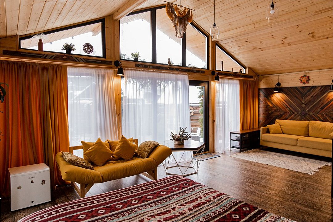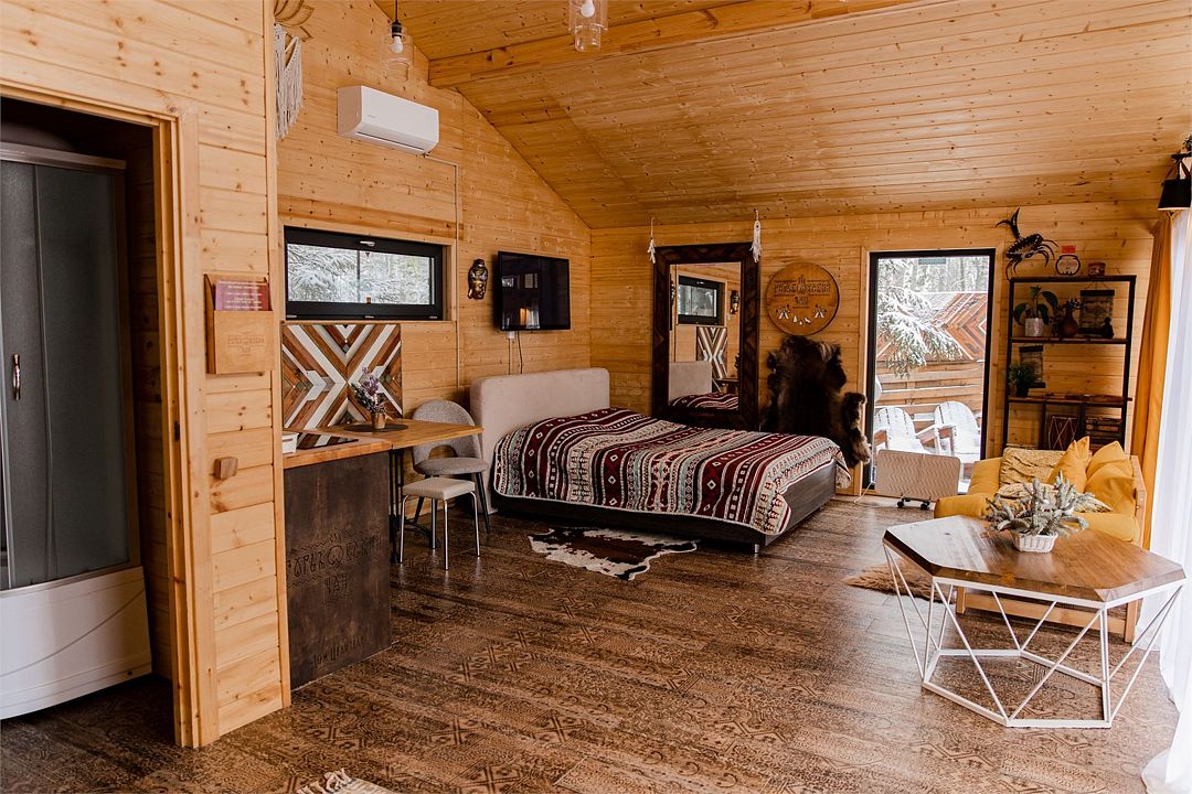Территории каждого дома обособлены забором, чтобы гости могли наслаждаться уединением. В то же время все локации «Горьковского чана» объединены общей концепцией — дизайнерским интерьером в стиле народов Северной и Южной Америки, уютом и гармонией с природой.