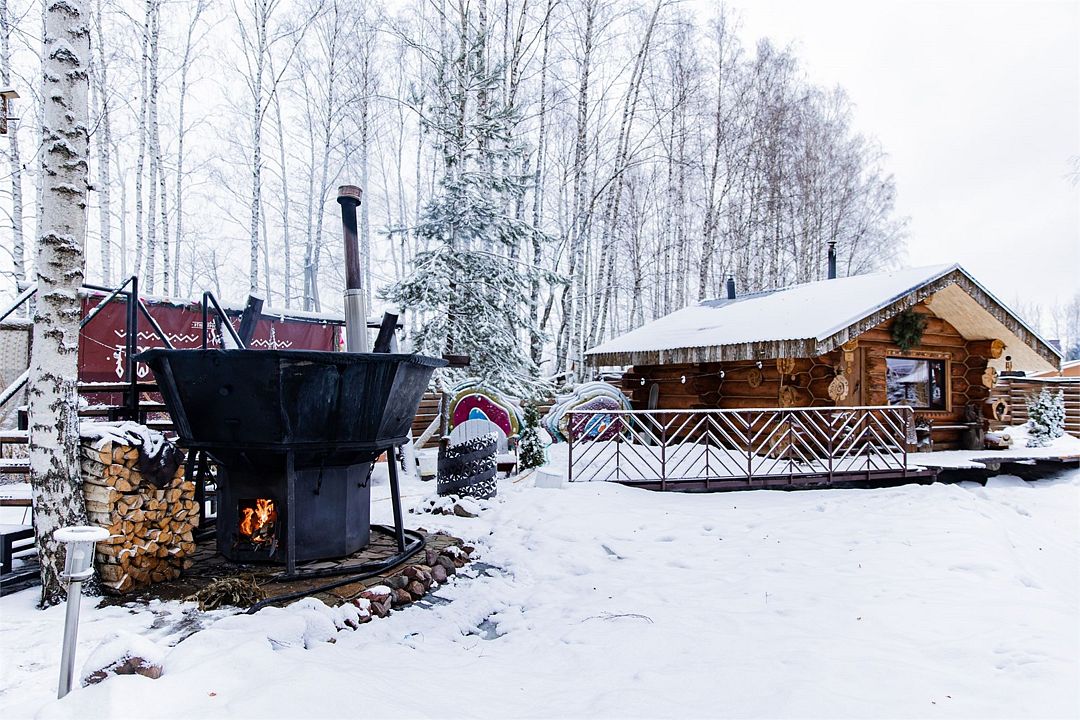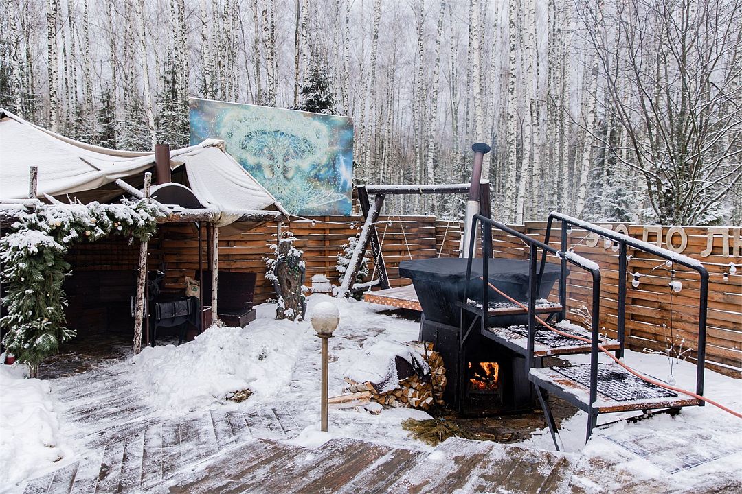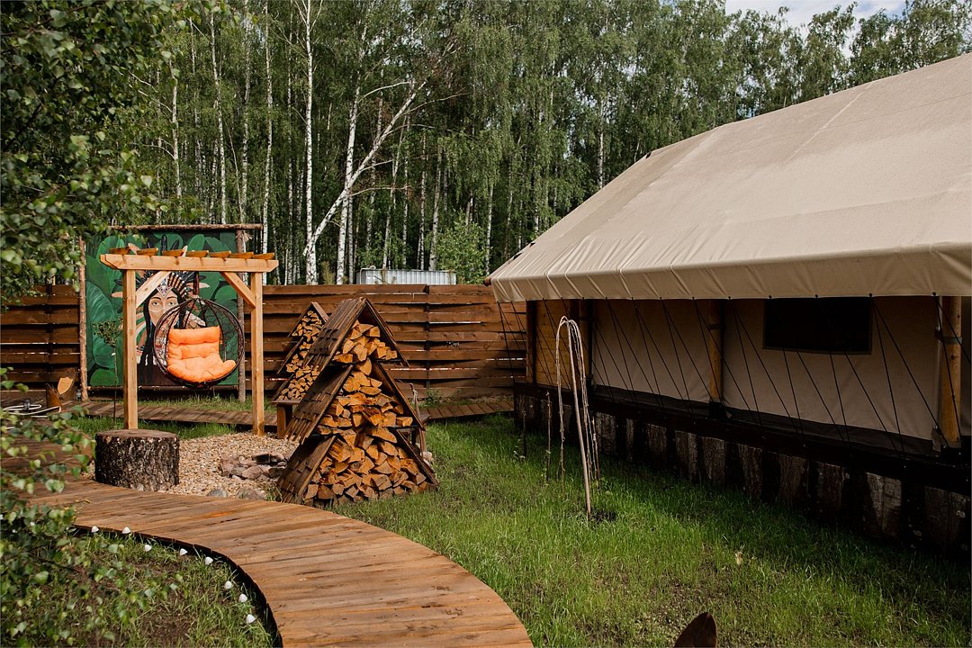 Территория около сафари тента приватная, свой двор, безлимитный чан с запасом дров (топит чанный мастер).
