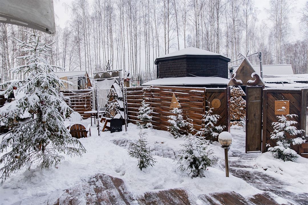 Территория Дома приватная, имеет 2 чана, 1 огромный персональный чан на 10 человек (топит чанный мастер), если заезд на 2-6 человек, на территории есть второй уютный чан — его подготовят для вас.