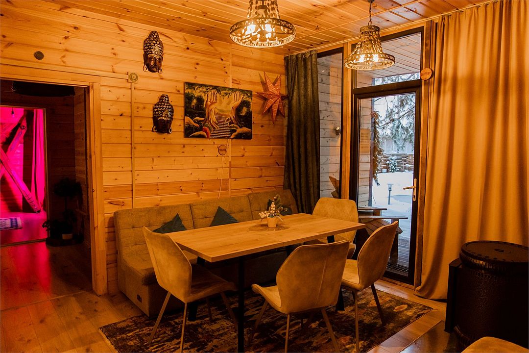 Семейный отдыхДостоинстваЭто именно та локация, где можно отдохнуть и восстановить силы: лес, баня, чан, свежий воздух — все для полной релаксации В домике (мы жили в доме Солнце) есть все необходимое, ничего не требуется брать с собой — только любимую еду и напитки) Персонал очень доброжелательный и внимательный. Большое спасибо владельцам за создание этого чудесного места! Обязательно приедем снова!