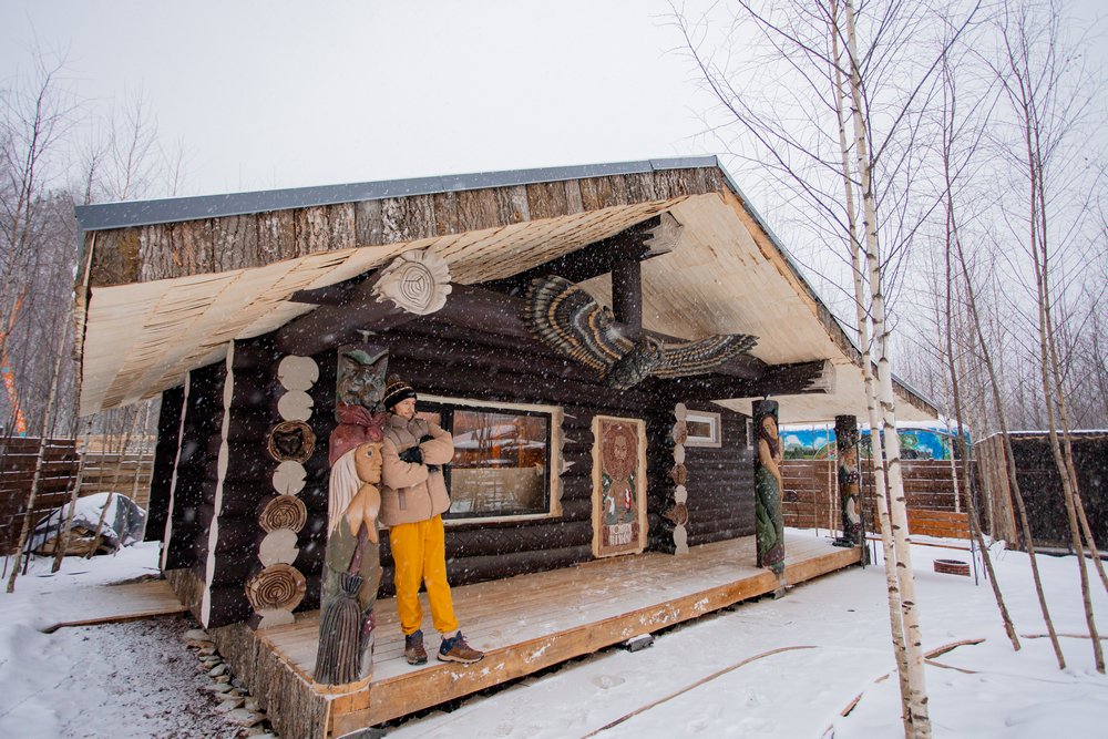 Территория Дома приватная: безлимитный чан(топит чанный мастер) крытый мангал-олень, фотозоны, тотемы.