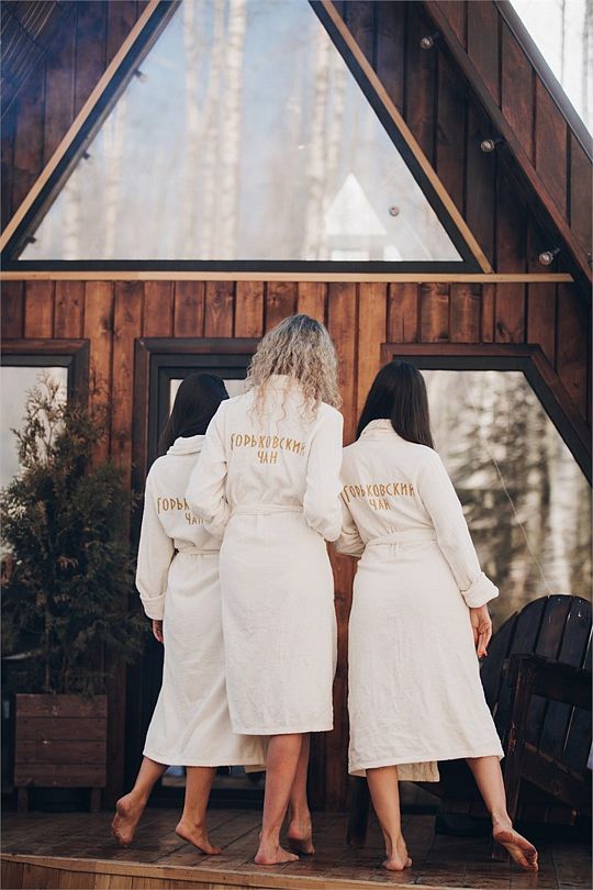 Уютный махровый халат в аренду для комфортного отдыха в чане или бане. Процедура парения в чане подразумевает несколько заходов за вечер по 20-30 минут, между заходами приятно одеться в халат, чтобы чувствовать себя комфортно.