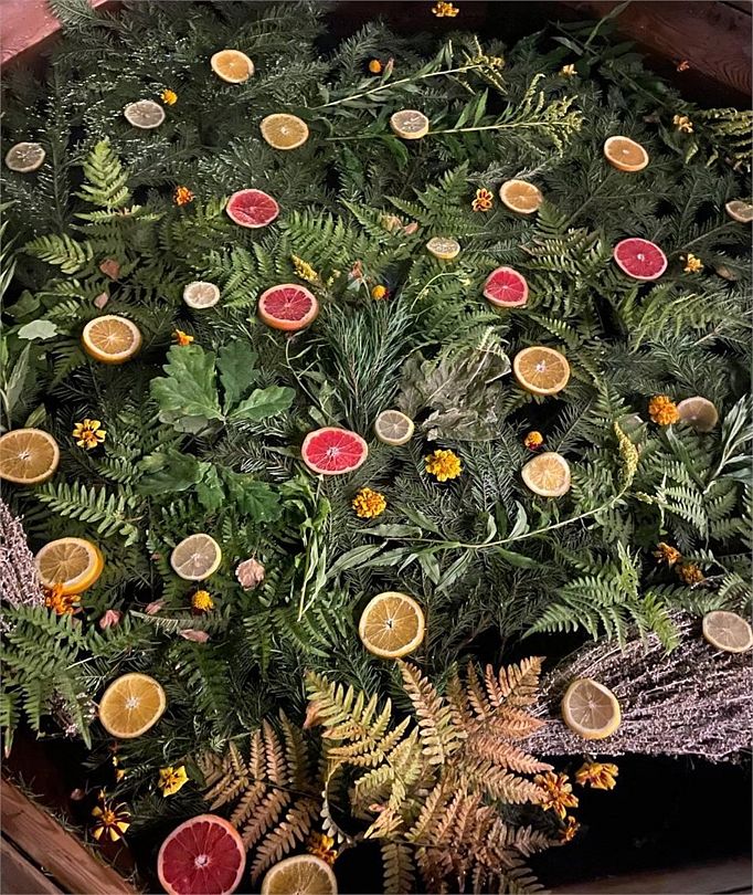 Красивый Чан. Наполнение Вашего Чана: Свежая пихта, ароматные травы, веточки, цитрусы — грейпфрут лимон. Чан наполняет для Вас администратор. Уточните наличие аллергии на виды трав, если есть.