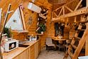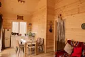 Отапливается печью и электрическим обогревателем. Кухня оборудована полностью: холодильник, плита, посуда для приготовления еды, столовые приборы, стол.