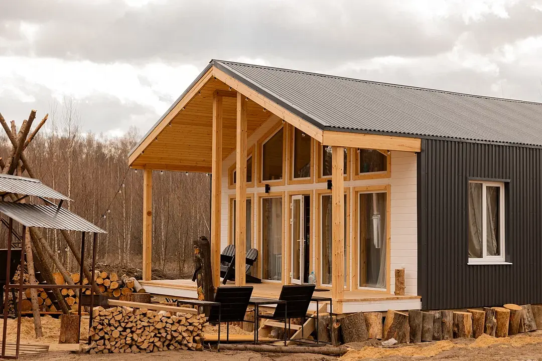 Дом с чаном Мини барн — просторный с панорамными окнами. Для двоих или семьи (2+1 или 2+2).