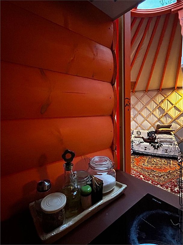 Идеален для 4 гостей. Душ и туалет с одноразовыми принадлежностями, тапочками и полотенцами внутри Юрты. Приватный просторный и уютный двор — забор и калитка. Чан и баня на территории Юрты, крытый мангал с освещением.