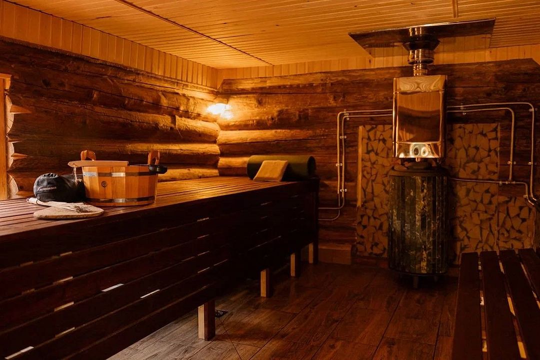 Ароматная баня на дровах, просторная парная с широким полком.