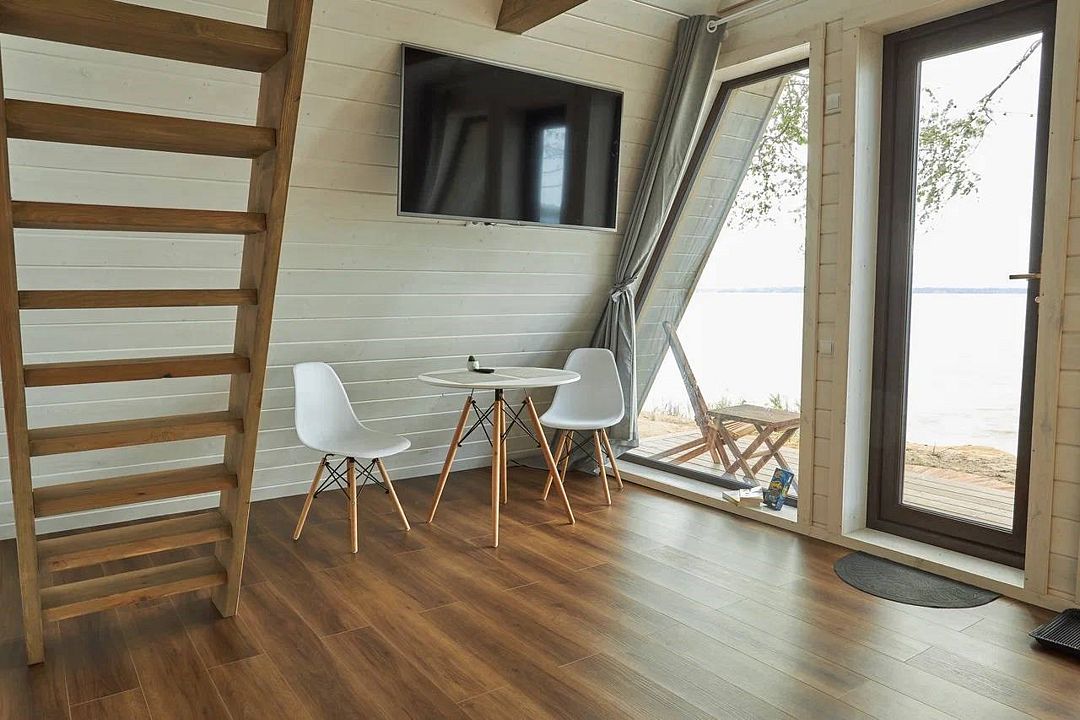 A-frame дом объединяет в себе комфорт гостиничного номера с возможностью отдыха на природе. Здесь вы попадаете в свой собственный особый мир, уютный и ни на что непохожий. Домик находится на первой береговой линии. Из панорамных окон открывается вид на Горьковское водохранилище. Около домика есть веранда с зоной отдыха, где можно встречать живописные рассветы и провожать роскошные закаты. Дом рассчитан на четырехместное размещение. Этот домик подойдет не только для отдыха со второй половинкой, но также и для уикенда с семьей. (ЗАЕЗД с 14:00 ВЫЕЗД до 12:00)Услуги и удобства