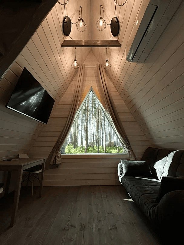 35 м2 · 2-х местный а-фрейм + 2 доп. места