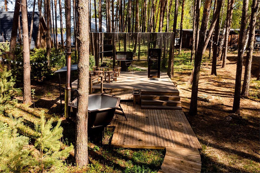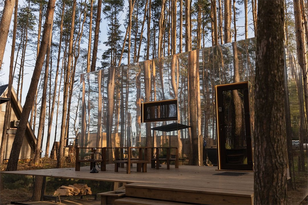 Полностью зеркальный панорамный дом укроет Вас от посторонних взглядов. Это - новейший из наших проектов, единственный в области домик, который буквально растворяется в природе. Уникальная стена из цельного безрамного стекла не оставит никого равнодушным, панорама обеспечивает полное слияние с природой и позволяет наслаждаться живописными видами. Для постройки дома использовались исключительно натуральные материалы. Дом рассчитан на пребывание двух человек. Несмотря на свои внешние габариты, внутри домик очень просторный - в Вашем распоряжении кровать, санузел, кухня, столовая зона. (ЗАЕЗД с 14:00 ВЫЕЗД до 12:00)Услуги и удобства