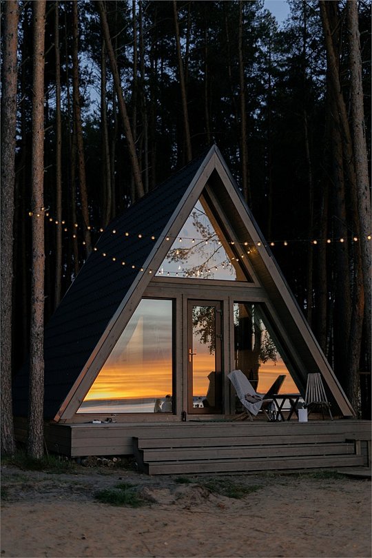 А-фрейм в сосновом лесу