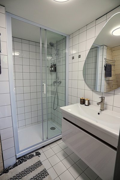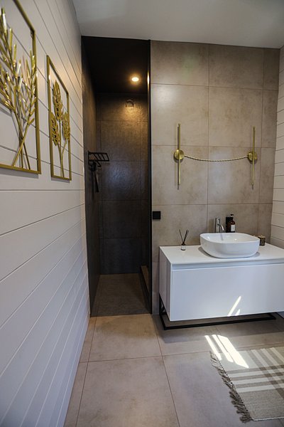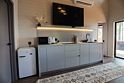 Всё необходимое для комфортного проживания уже предусмотрено: плита, чайник, холодильник, телевизор, кондиционер и посудомоечная машина. Также в общей комнате есть комфортабельный диван.