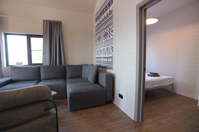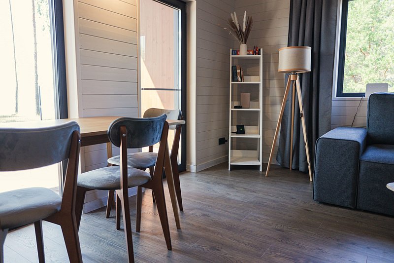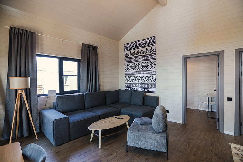 Площадь домика — 36 м². Размещение до 4 человек, за третьего и четвёртого предусмотрена доплата.