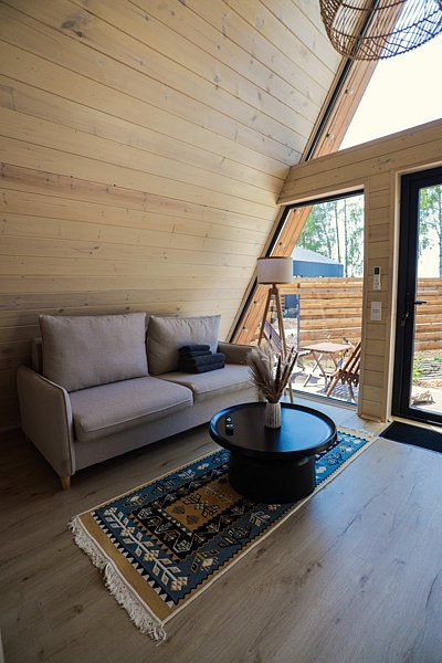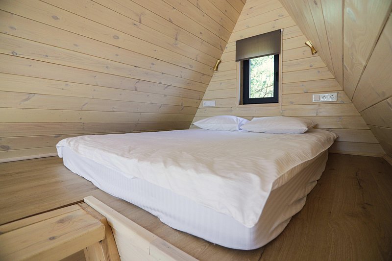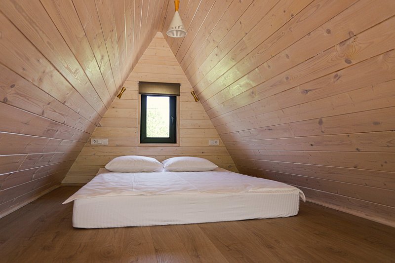 A-Frame (светлый) — это уютный домик для двоих-четверых гостей.