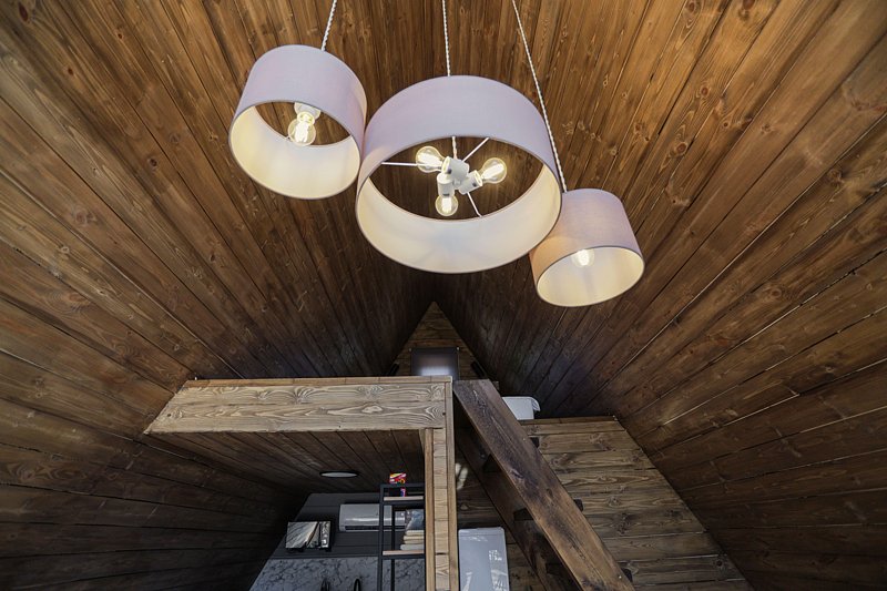 A-Frame (большой) — это просторный дом с отдельной комнатой на первом этаже и двуспальной кроватью на втором.