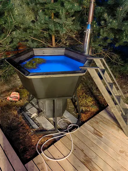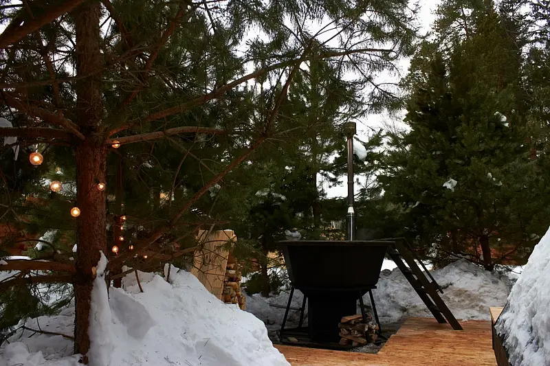 Заезд в 16:00, выезд в 13:00. Чан для этого домика оплачивается отдельно и стоит 6000 ₽.