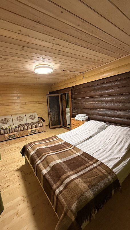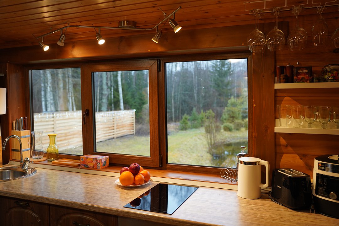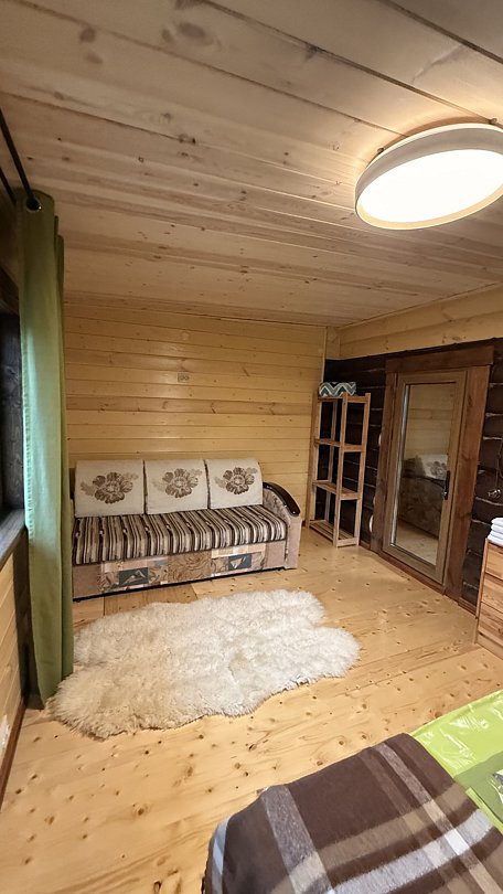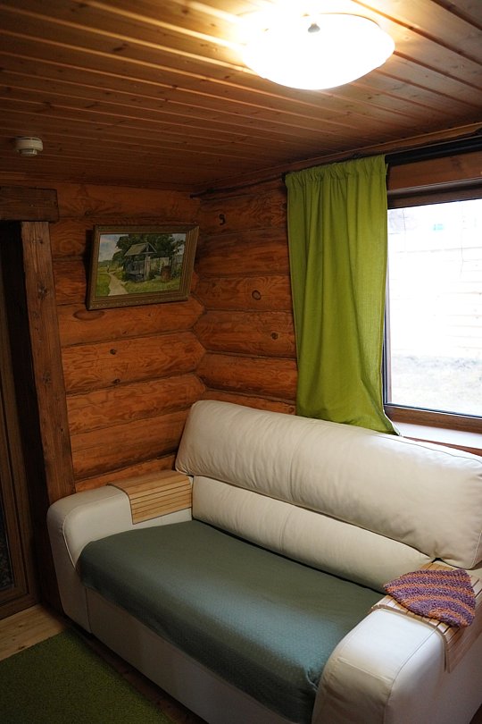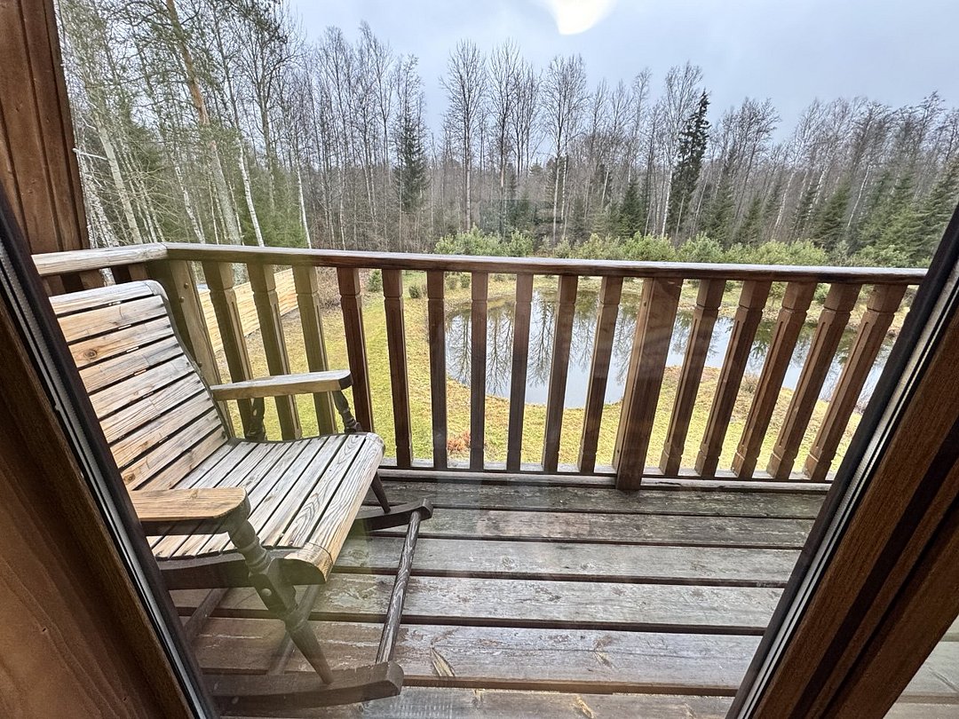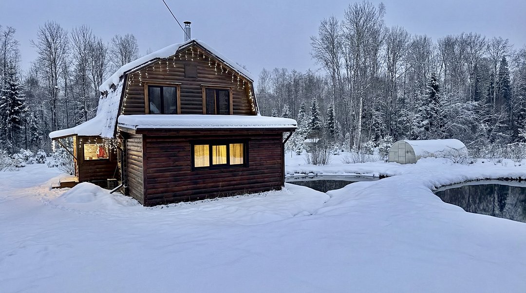 Бревенчатый дом с любовью и вниманием обставлен всем необходимым, чтобы каждый чувствовал себя комфортно. Есть телевизор, Wi-Fi, кухня с техникой, мягкая мебель, камин и балкон, с которого открывается красивый вид на пруд.