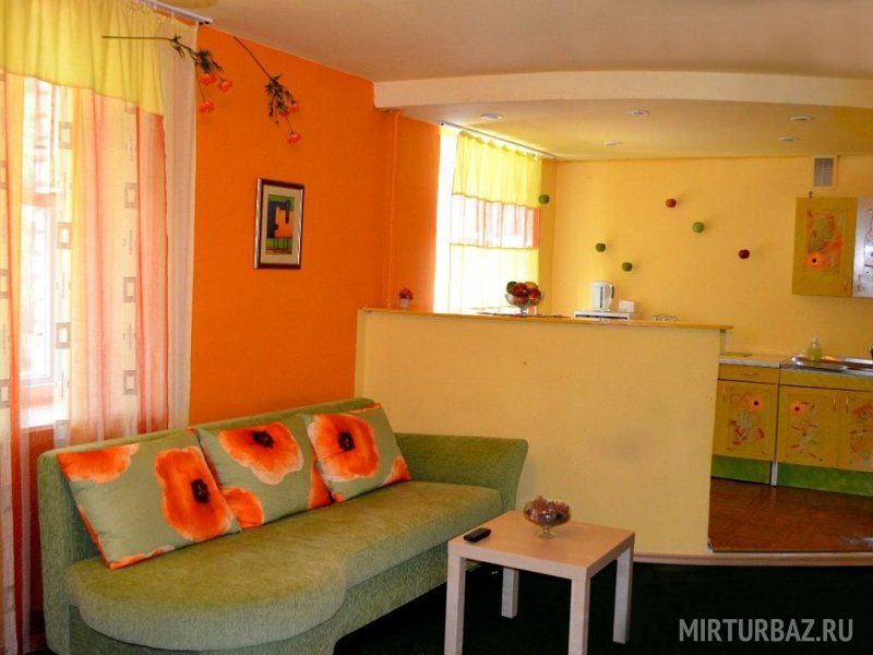 В номере двуспальная кровать, кухня с холодильником, санузел с душевой кабиной.