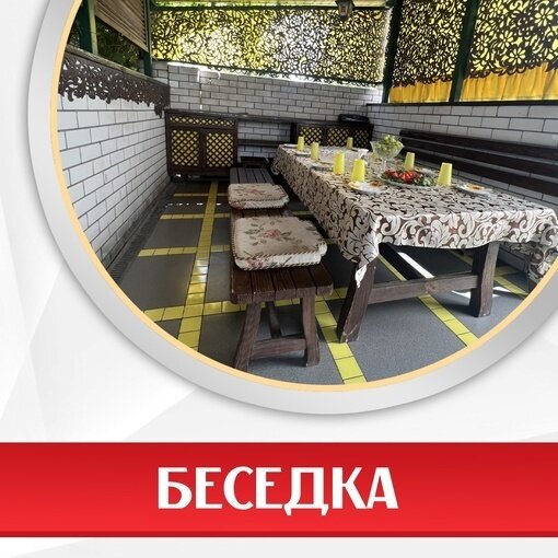 - ящики для хранения посуды и продуктовПри заказе беседки, администратор познакомит Вас с меню, которое можно также заказать к отдыху в беседке, а также подберет лучшие варианты, проведения Вашего отдыха!