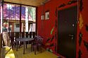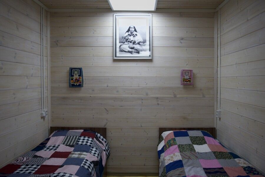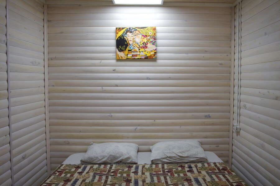 Дом-студия на восемь человек. Четыре двуспальные кровати. Есть кухня (чайник, плитка, набор посуды, холодильник, микроволновка), туалет, душ, горячая вода.