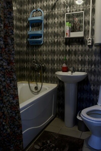 Кухня оборудована: плита, духовка, СВЧ-печь, холодильник, набор посуды. Есть раздельные санузел и душ.