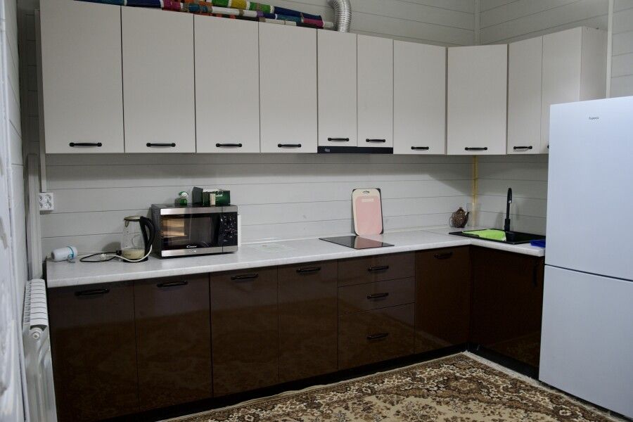 Кухня: чайник, микроволновка, холодильник, индукционная встроенная плита. Душ и туалет раздельные. Две больших веранды. Мангал около дома.