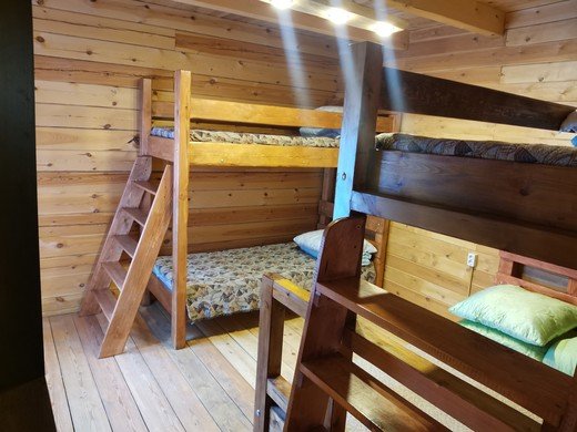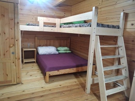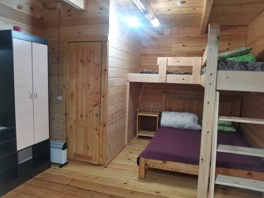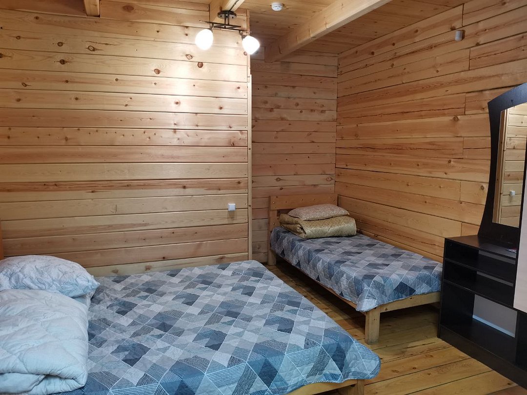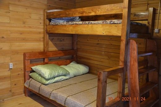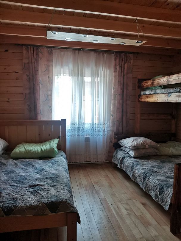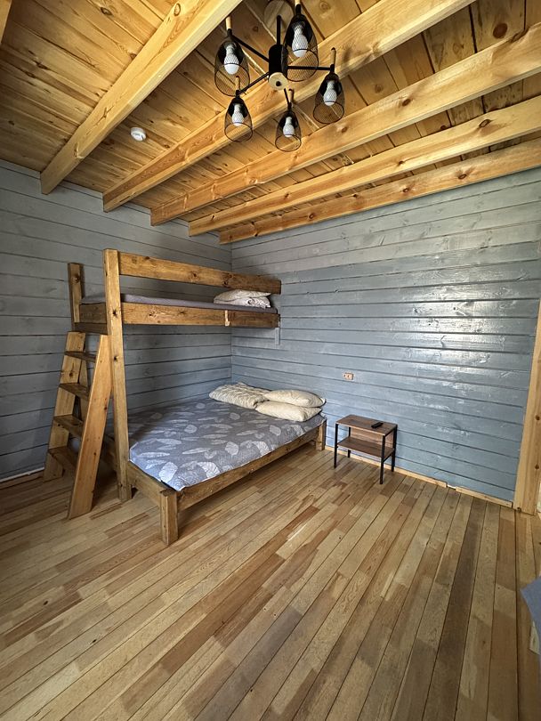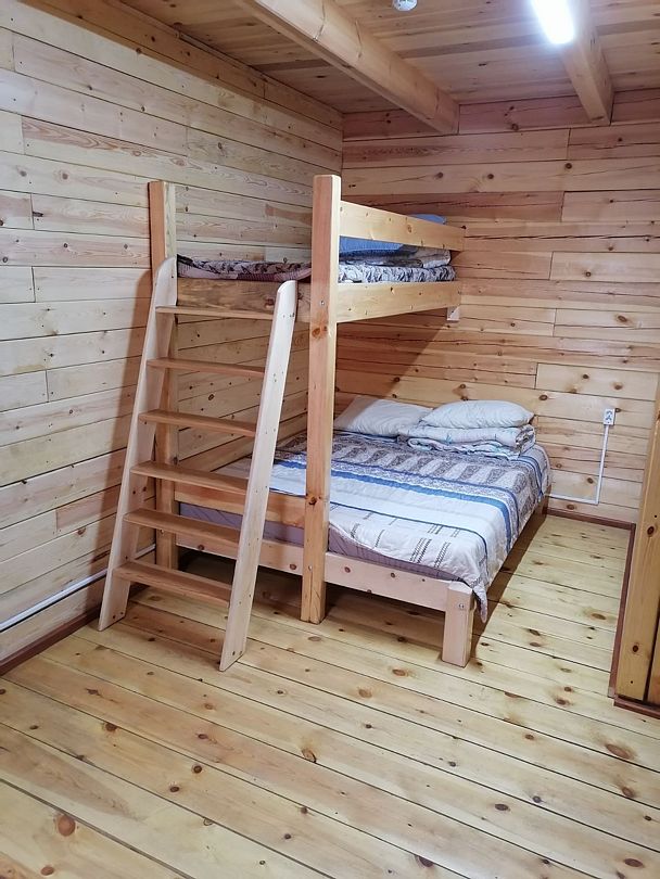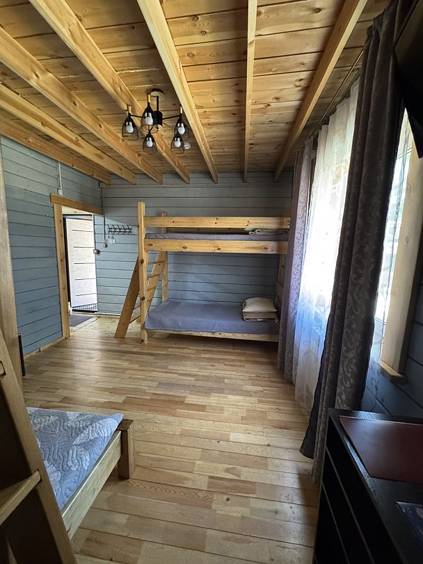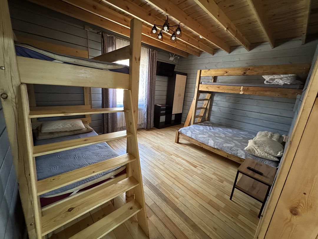 Одна двуспальная кровать, одна двухъярусная кроватьВ доме