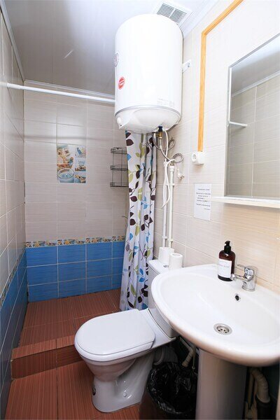 В номере двуспальная и односпальная кровати, санузел с душем, 1 этаж.