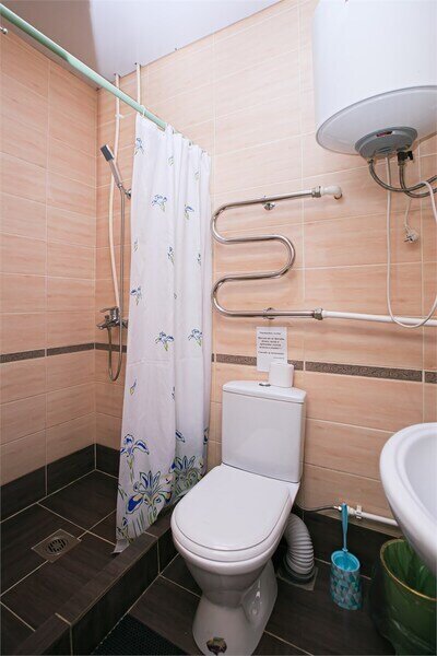 В номере двуспальная и односпальная кровати, санузел с душем, холодильник, телевизор