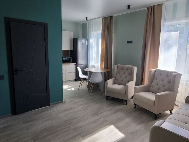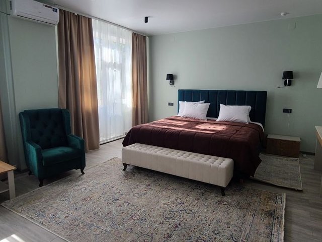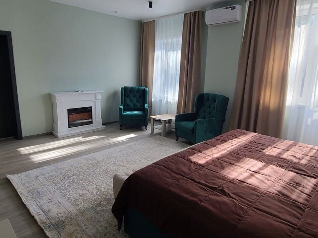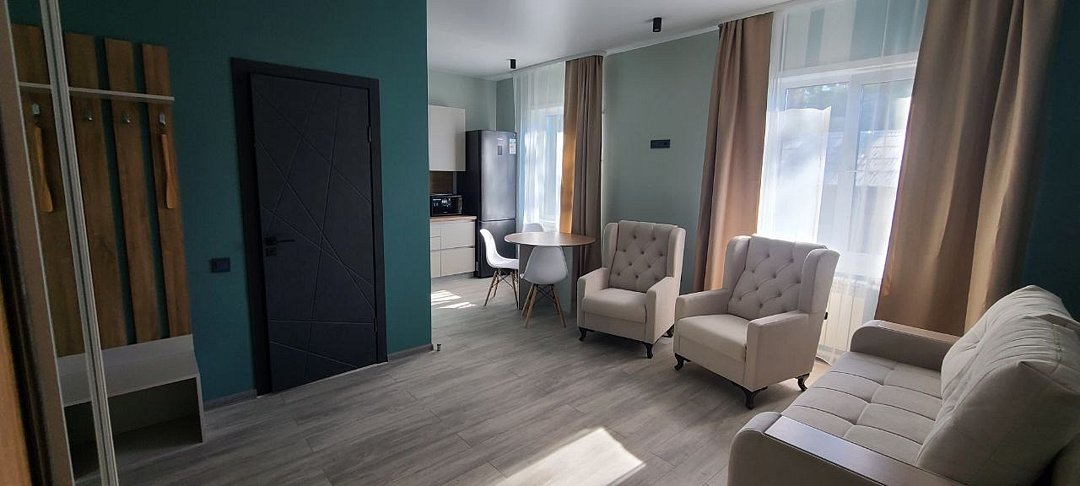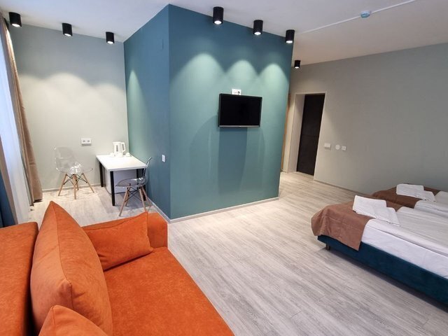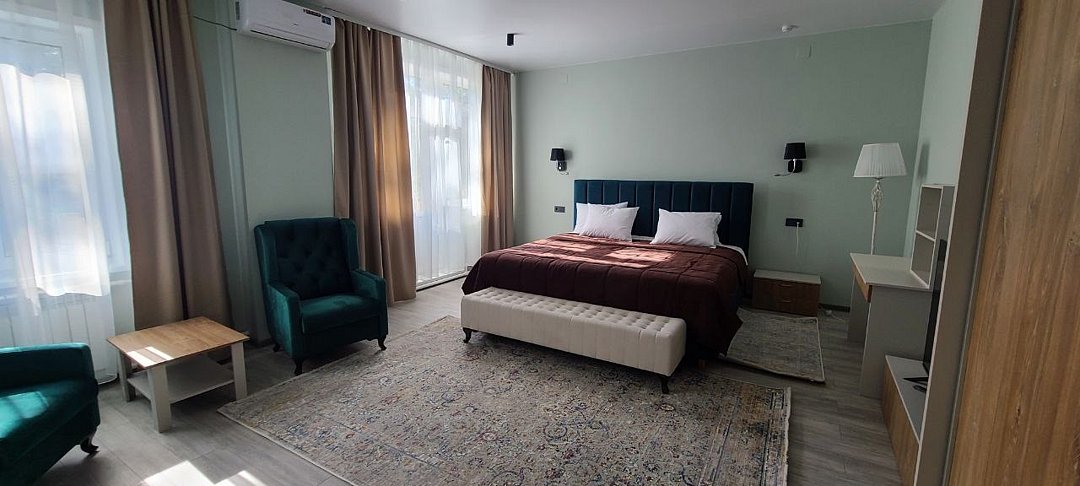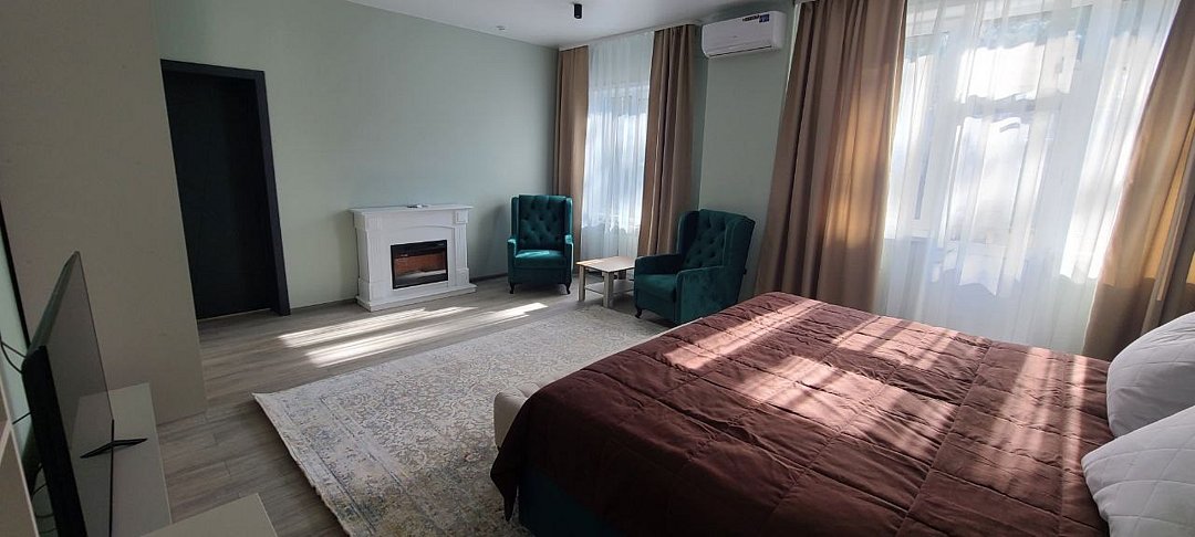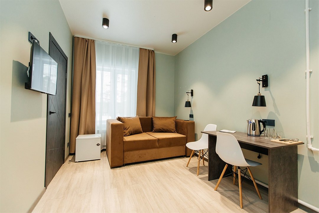 Люкс — роскошный двухкомнатный номер, состоящий из кухни-гостиной и спальни, рассчитанный на проживание двух человек на основном месте и двух человек на дополнительных местах (диван).