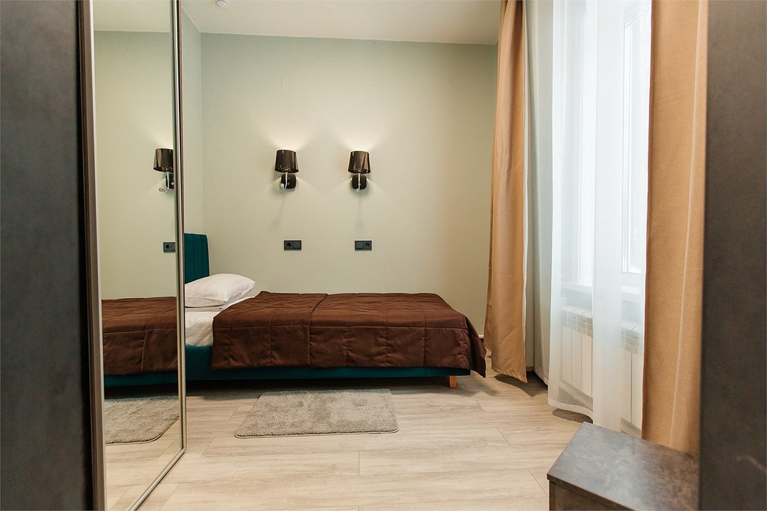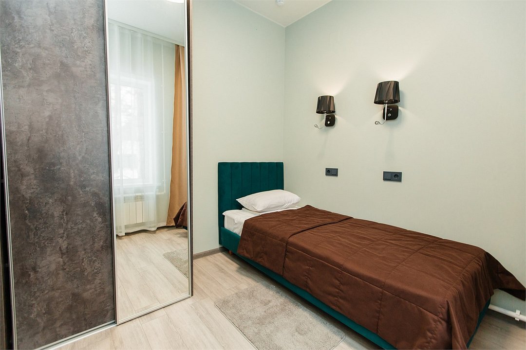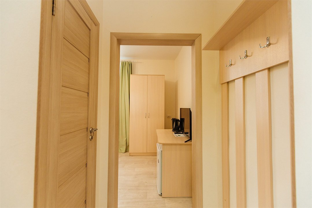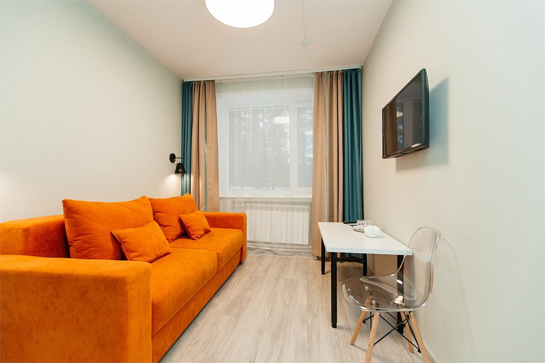 Стандарт+ — небольшой уютный номер с современным ремонтом, состоящий из 1-й жилой комнаты, с ванной комнатой в номере, рассчитанный на проживание одного/двух человек. Корпус 4, 9,7.