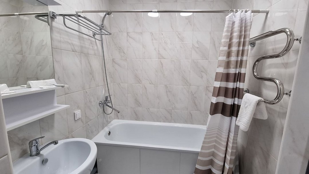 Уютный номер с современным ремонтом, состоящий из 2-х жилых комнат, с ванной комнатой в номере, рассчитанный на проживание двух и более человек. Корпуса 0, 4, 5, 7, 9.