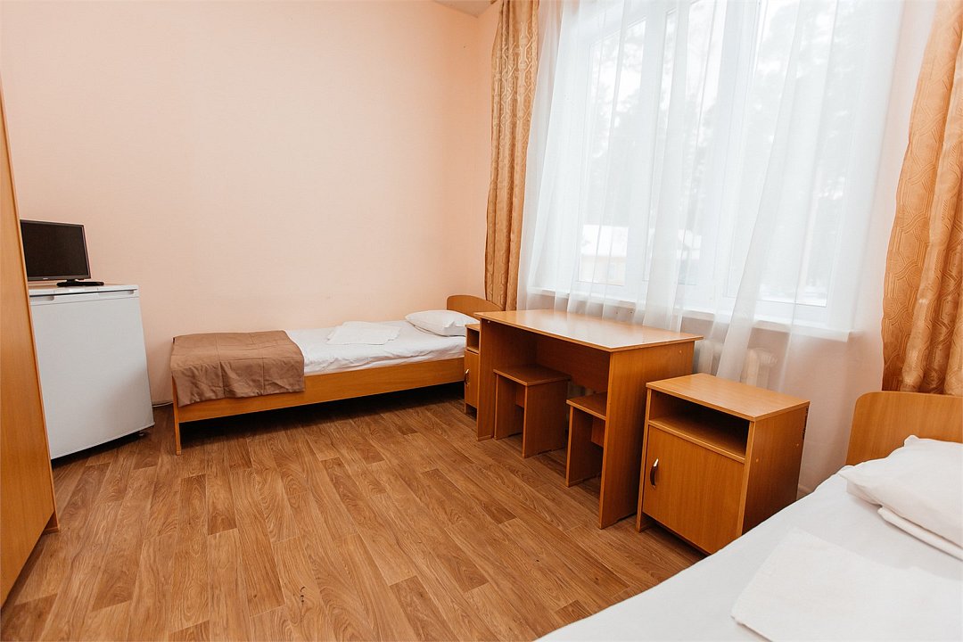 Небольшой уютный номер, состоящий из 1-й жилой комнаты, с санузлом в номере, рассчитанный на проживание двух человек. Корпус 2, 3.
