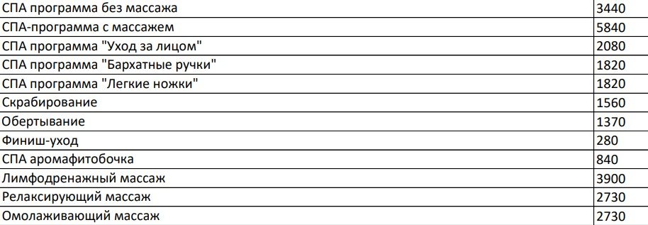 - сауна после 17.00 (1 час, до 5 человек) - 2400 ₽.