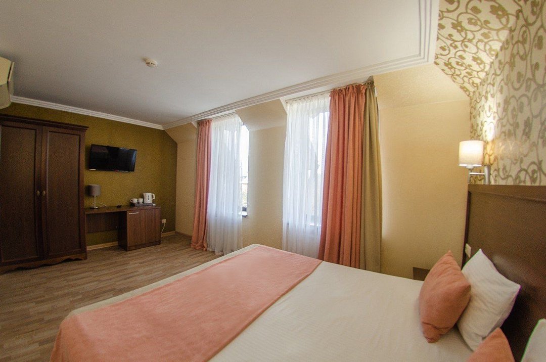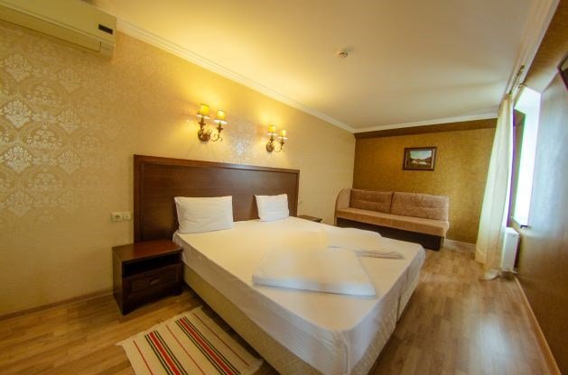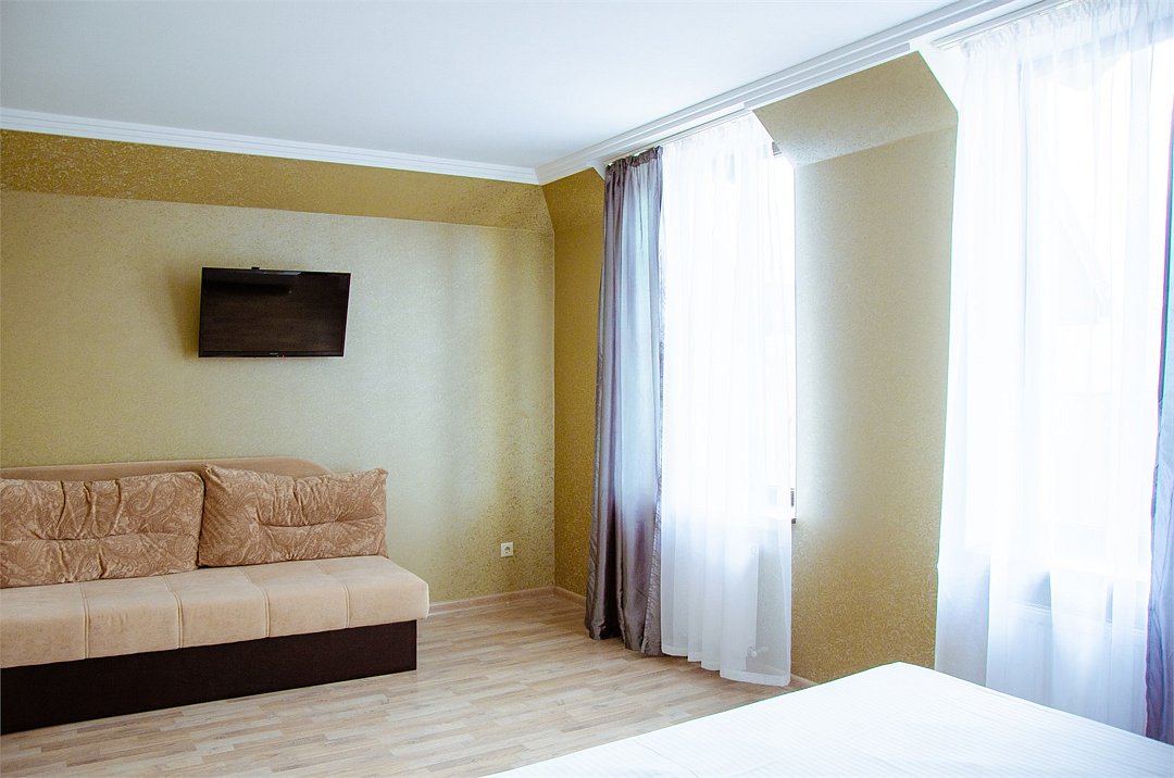 Полулюкс двухкомнатный с двуспальной или двумя односпальными и диваном с балкономДвухкомнатный семейный без балкона (с двуспальной или двумя односпальными и диваном)