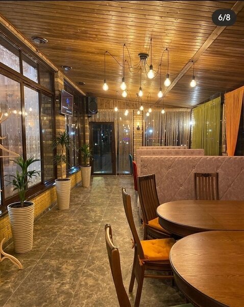 На территории базы отдыха работает без выходных ресторан, с 10.00 до 00.00, еда оплачивается по меню. Для гостей ежедневно действует скидка 20% на обеды в ресторане с 12.00 до 15.00!