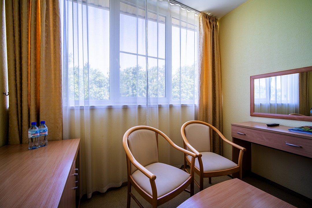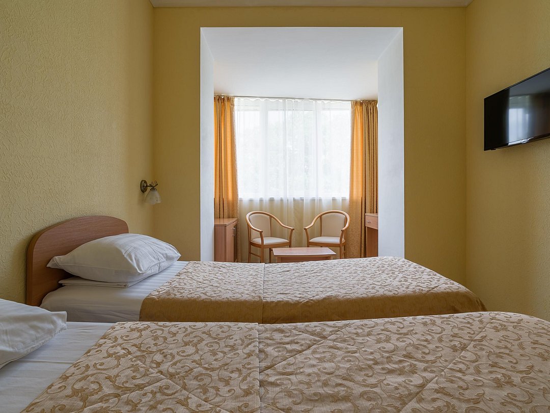 2 взрослых на основных местахВключен завтрак, обед и ужинПрограмма «Оздоровительная»ПодробнееПрограмма оздоровления включает в себя проживание в выбранной категории номеров и минимальный набор лечебных процедур: первичный прием, осмотр и наблюдение у терапевта, климатотерапия, диетотерапия по лечебному столу №15 (общий стол), ингаляции с использованием масел, фитотерапия (напиток подбирается врачом), прием минеральной воды (100–200 мл три раза в день, номер источника определяется врачом), беседы с врачами о здоровом образе жизни (один раз в неделю), скандинавская ходьба (ежедневно, кроме субботы и воскресенья).