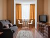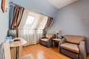 Помимо основной комнаты, есть небольшая смежная комната с раскладным креслом. Санузел: душевая кабина, умывальник, унитаз, фен, зеркало, индивидуальные косметические наборы, тапочки индивидуального пользования, комплект полотенец, банный халат.