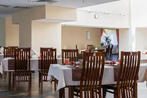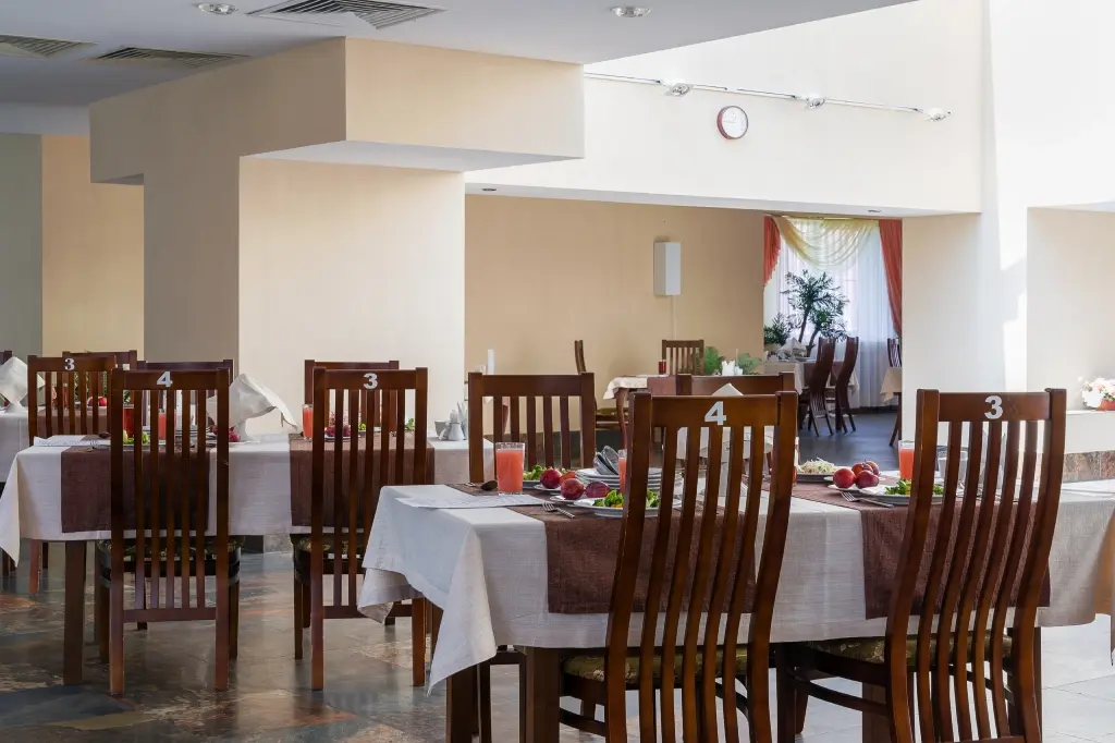 Санаторий предлагает сбалансированное трехразовое питание с возможностью выбора диеты в соответствии с медицинскими рекомендациями. Приятная атмосфера, окруженная зелеными насаждениями и благоухающими кустами роз, создает идеальные условия для расслабления и восстановления сил. Прогулки по ухоженной территории и занятия спортом сделают пребывание в «Горном» не только полезным, но и приятным.