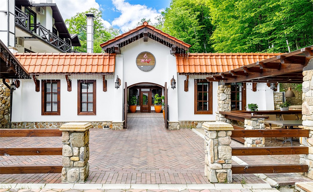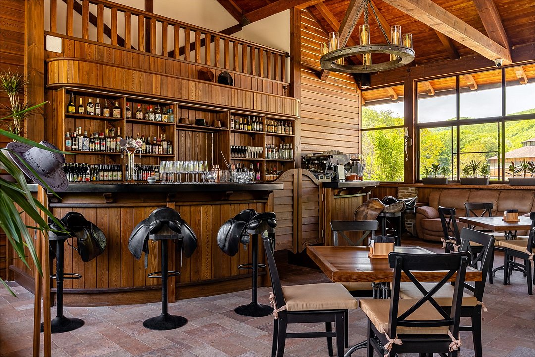 В ресторане «ЖАР» представлены преимущественно блюда из мяса по фирменным рецептам. Изюминкой гриль-бара «Подкова» является большой камин для приготовления блюд на вертеле. А ресторан «Уха» удивит гостей разнообразием рыбных блюд и живописным видом на горную реку.