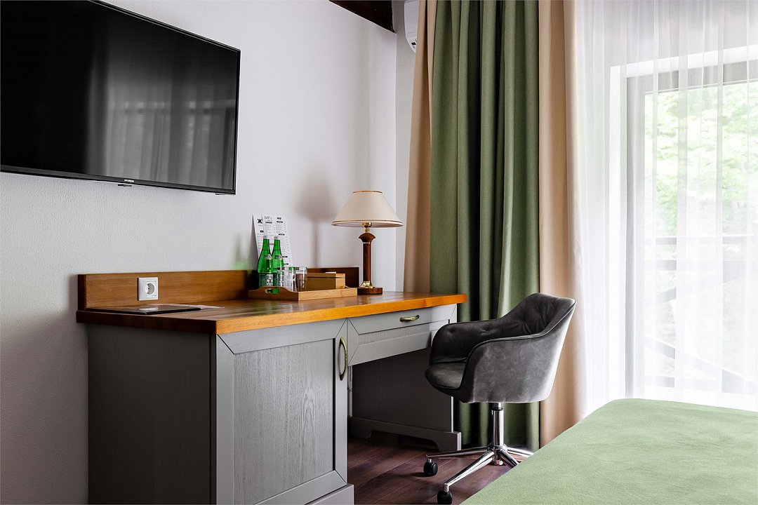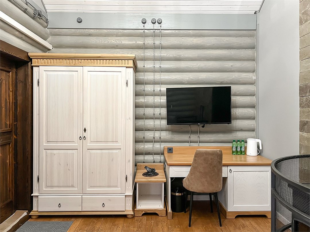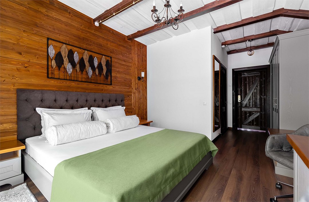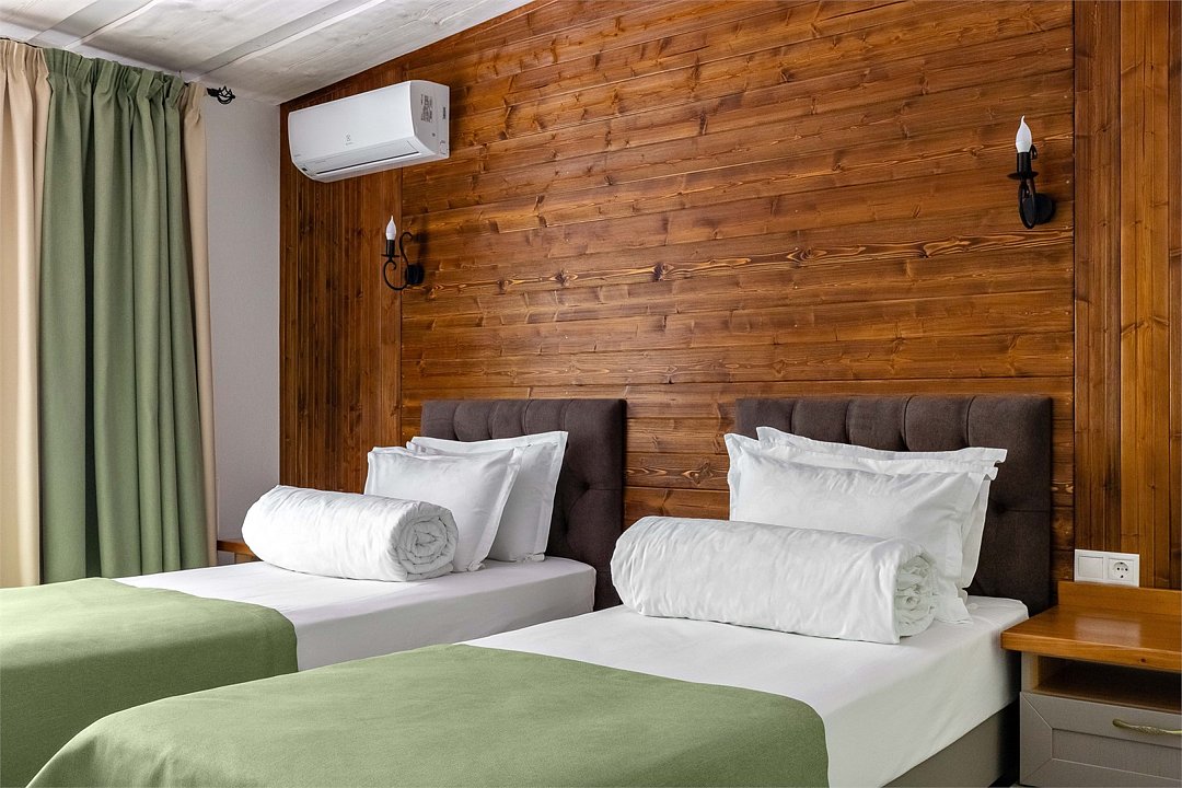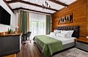 Получите особое наслаждение от изысканного отдыха, остановившись в одном из номеров категории Deluxe. В элегантном однокомнатном номере мебель и предметы интерьера выполнены из эко-материалов, а все ткани натуральные и приятные на ощупь. В каждом номере балкон с видом на великолепный лес. Номера расположены в уютных коттеджах, каждый из которых рассчитан на четыре номера. В холле коттеджа вас ждет настоящий камин и комфортная зона отдыха. Парковка находится в непосредственной близости от коттеджей, обеспечивая удобство для гостей. Дополнительные места: В номер можно добавить 1 еврораскладушку для ребенка до 16 лет или бесплатную детскую кроватку (до 3 лет) по Вашему запросу. Для взрослых доп. места не предусмотрены.Услуги и удобства