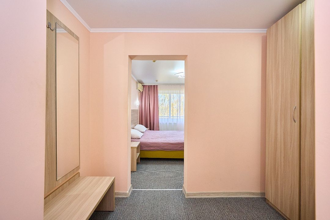 Спальный корпус, лечебное отделение, столовая компактно расположились в одном здании. Номерной фонд санатория разнообразен. Есть одно и двухместные номера эконом-класса, стандартные, а также категории комфорт и люкс.