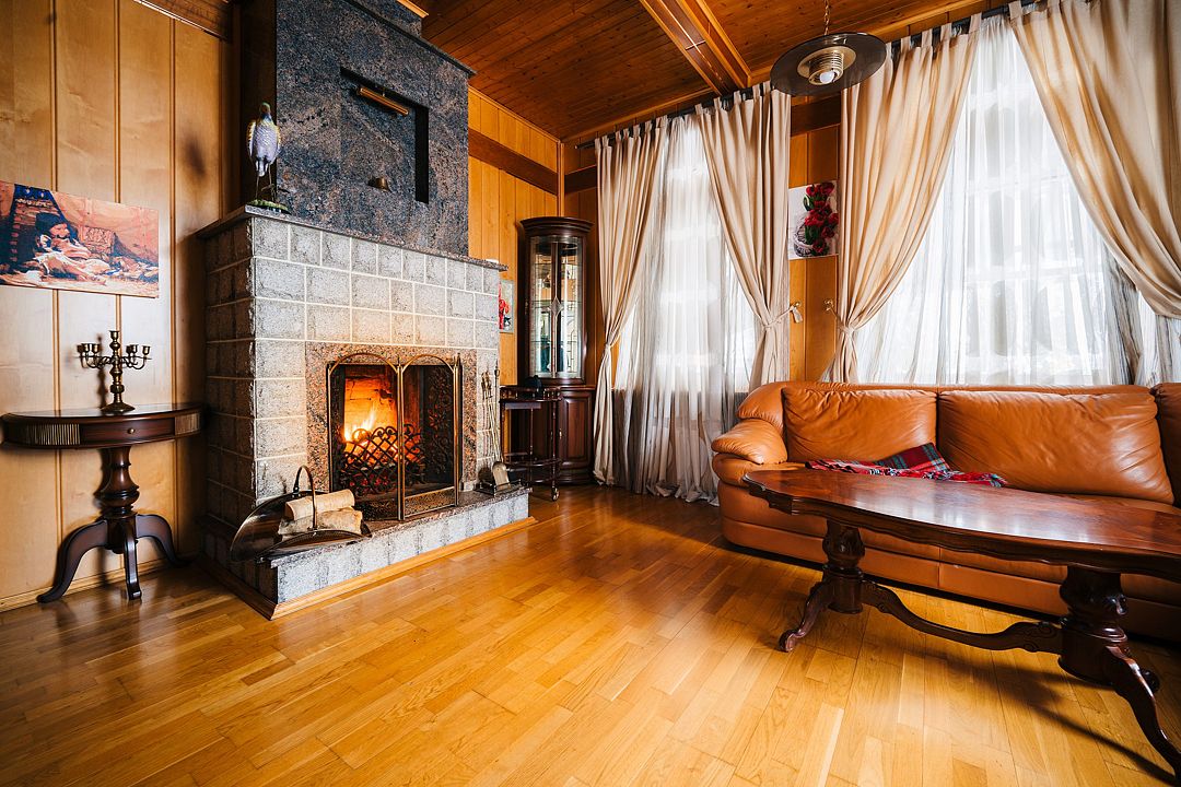Коттедж с камином, караоке и горячей купелью (за дополнительную плату).