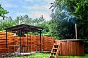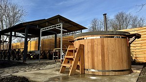 У каждого домика установлена дровяная купель Фурако, где можно полностью расслабиться, ощущая тепло и пар на свежем воздухе.