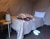 Шатер 12 кв.м с террасой, двумя односпальными кроватями, общей обогреваемой ванной комнатой. Одна ванная комната на два шатра - №4 и №6. Расположены рядом - смотрите карту в фотоленте. Такой вариант подходит для семьи или компании друзей. Утепленный шатер с теплыми полами, электропростыней. 5 розеток. Чайник. Переносной столик. На террасе 2 шезлонга.Услуги и удобства