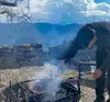 Уединенная площадка с красивейшим видом! Большая костровая чаша и захватывающий вид на горы, лавочки, пледы, столик, решетки или шампуры, опахало.