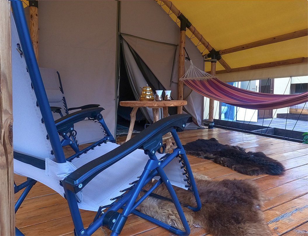Шатёр 12 кв.м с террасой и гамаком, с индивидуальной ванной комнатой. Утепленный шатер с теплыми полами, электропростыней. 5 розеток. Чайник. Переносной столик. На террасе 2 шезлонга. Вид на горы.Услуги и удобства